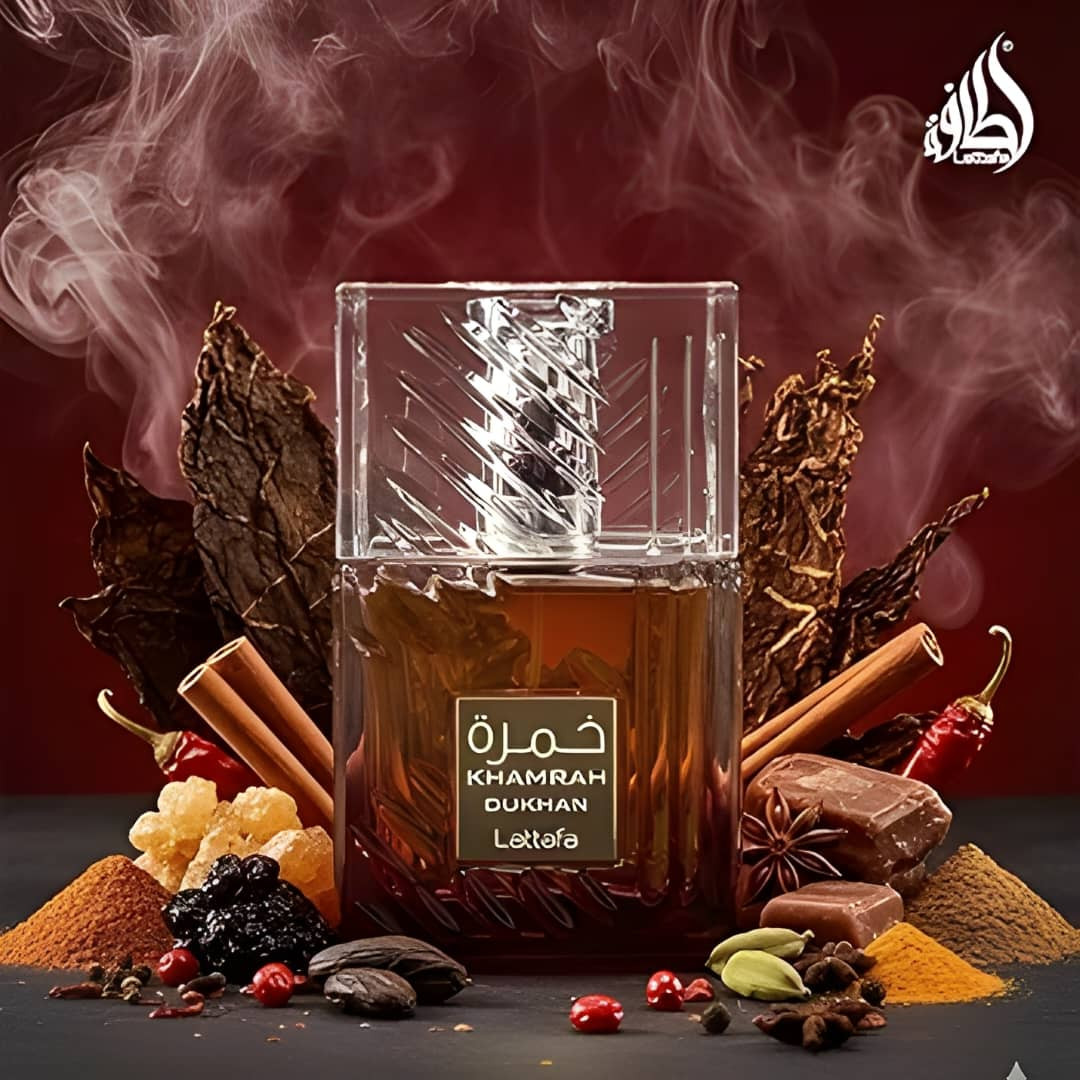 لطافة عطر خمرة دخان للرجال - 100 مل اغمر نفسك في سحر الفخامة الشرقية مع عطر لطافة Khamrah Dukhan، وهو عطر ساحر يجسد القوة والثقة والذكورة الراقية. يمزج عطر او دي بارفان الاستثنائي هذا بين دفء التوابل الحلوة والدرجات الدخانية والعنبر العميق، مما يخلق رائحة لا تقاوم تدوم لفترة طويلة بعد مغادرة الغرفة.