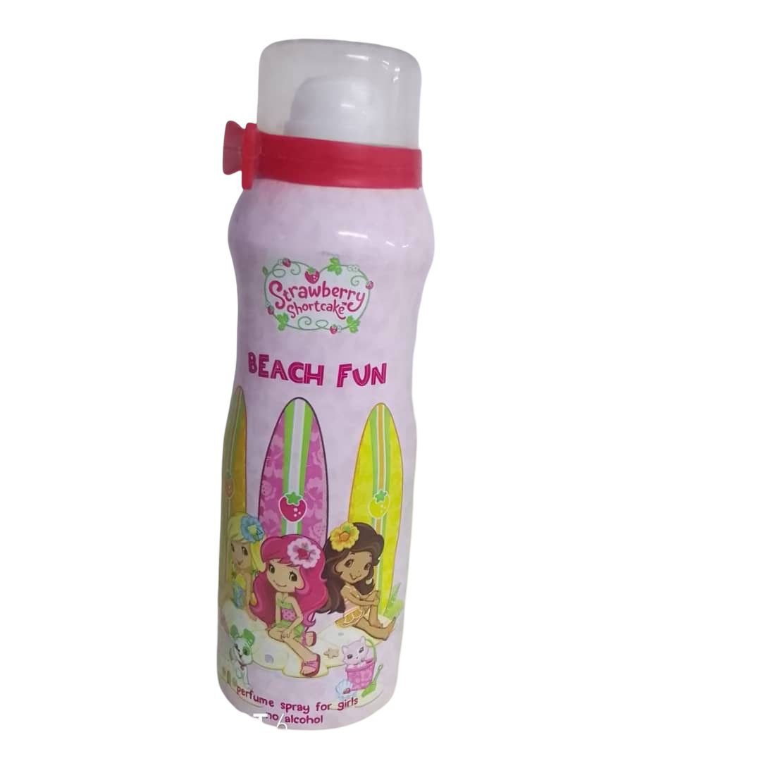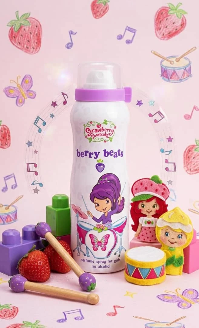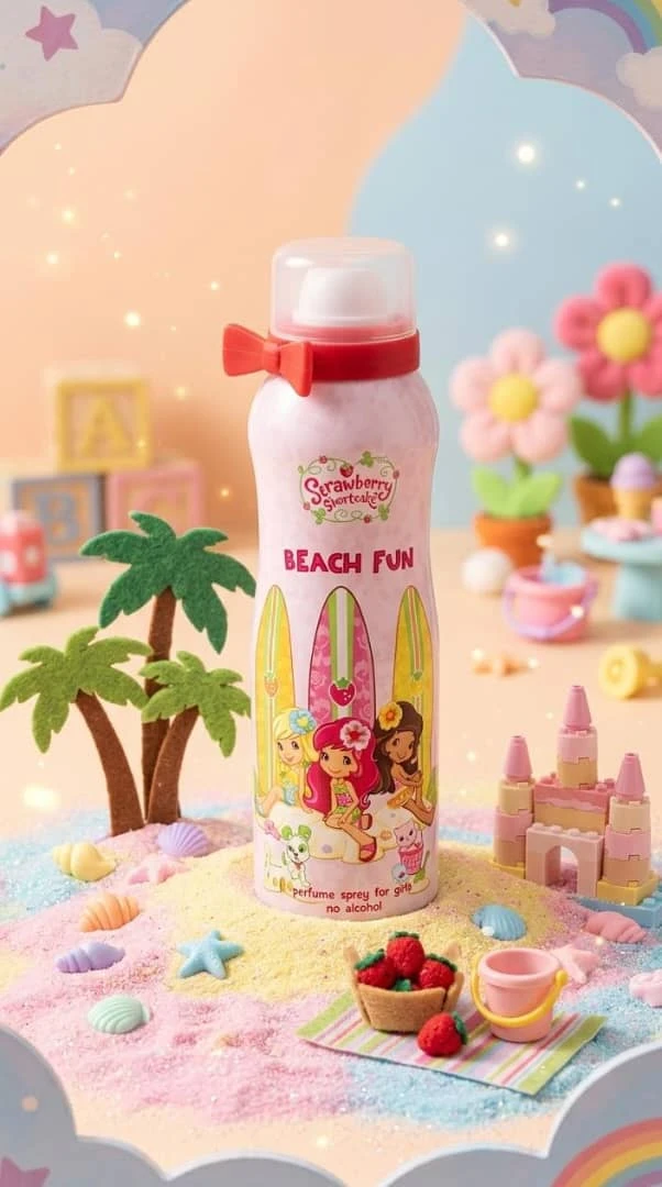 عطر للأطفال مستوحى من شخصيات Strawberry Shortcake، بتصميم مرح بطابع الشاطئ مع ألوان زاهية ولوح تزلج أصفر. يأتي برائحة فاكهية لطيفة، ومناسب للاستخدام اليومي للأطفال. خالٍ من الكحول، وآمن على البشرة، في عبوة جذابة مع رباط للزينة