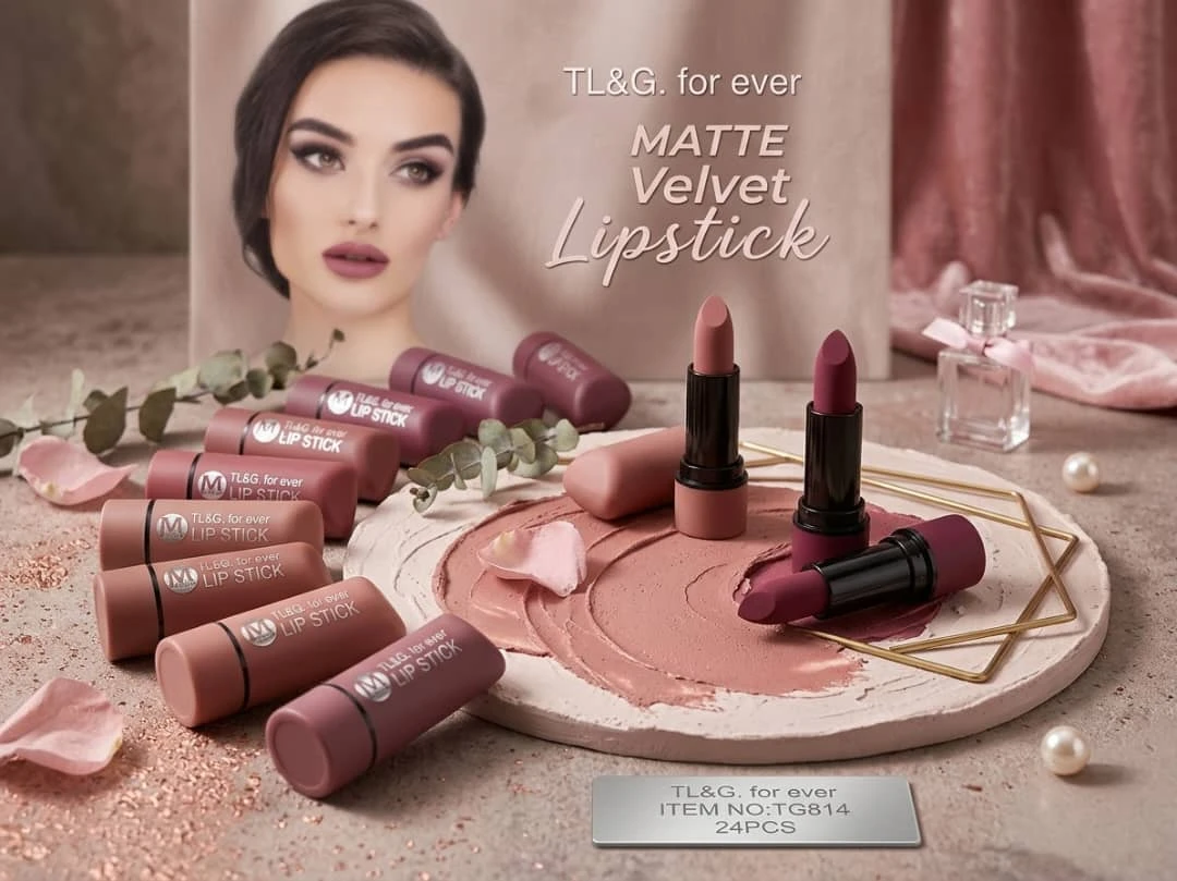 مجموعة من 24 قطعة من أحمر الشفاه ذو الملمس المخملي (مات) من ماركة TL&G. يتميز المنتج بتركيبة ناعمة ومطفيّة توفر لوناً غنياً ومظهراً طبيعياً للشفاه. تأتي الألوان ضمن درجات دافئة ومتنوعة تناسب مختلف الأذواق والمناسبات.