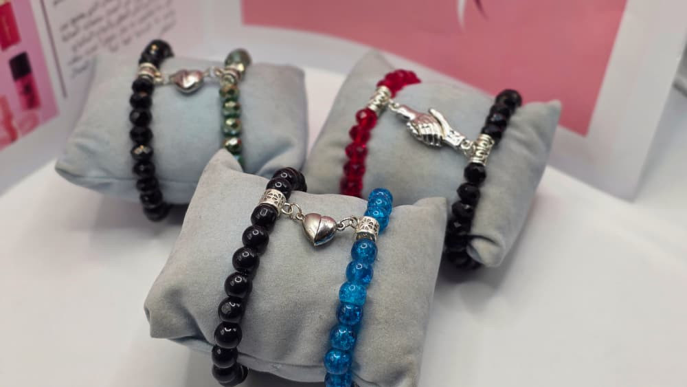 *" ✨???❤️❤️? مـسـافـة.. لـكـن الـقـلـوب مـتـصـلـة ?❤️❤️???✨ "* ​مـهـمـا بـاعـدت بـيـنـكـمـا الـمـسـافـات ، يـبـقـى هـنـاك رابـط يـجـمـعـكـمـا ، أساورنا لـيـسـت مـجـرد زيـنـة ، بـل هـي وعد بـالـبـقـاء قـريـبـاً ، فـبـمـجـرد اقـتـراب الأيـدي ، تـنـجـذب الـقـلـوب لـتـعـلـن أنـكـمـا "واحـد" . ​الألـوان الـمـتـوفـرة : (أخـضـر ?، أحـمـر ?، أزرق ?، وردي ?، أبـيـض ⚪، فـضـي ?) ? ​لـيـكـون جـزء مـنـك.. مـعـه دائـمـاً ?