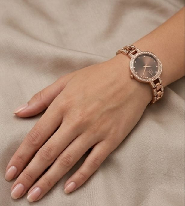 ساعة صُممت لتكون الرفيق الأمثل لمعصمكِ، تدمج بين التصميم العصري الرقيق وبريق الفصوص الذي يمنح إطلالتكِ إشراقة لا مثيل لها.