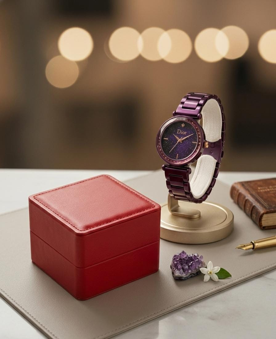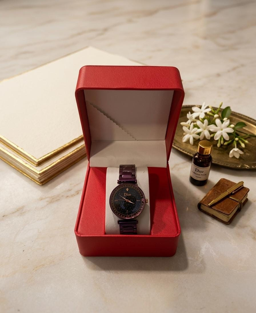 ساعة ديور (Dior).. لمسة من السحر على معصمكِ ⌚✨ ارتقي بإطلالتكِ اليومية مع هذه القطعة الفاخرة التي تجمع بين الجاذبية العصرية والتصميم الراقي. ساعة صُممت خصيصاً لتمنحكِ حضوراً ملفتاً في كل مناسبة. ما يميزها: تصميم فريد: إطار مزين بالفصوص البراقة مع ميناء غامض بلمسات نجوم خلابة، بلون داكن يعزز فخامة الساعة. خامات فائقة الجودة: هيكل وسوار من الستانلس ستيل المقاوم للصدأ، مع طلاء PVD المتين، وزجاج مقاوم للخدش للحفاظ على رونقها. أداء عملي: مصممة بميزة مقاومة الماء، لتكون رفيقتكِ الموثوقة في مختلف أوقاتك. محتويات الطلب: ساعة ديور (Copy 1) بتصميم نسائي أنيق. علبة الماركة الفاخرة، لتكون خياركِ الأمثل للهدايا