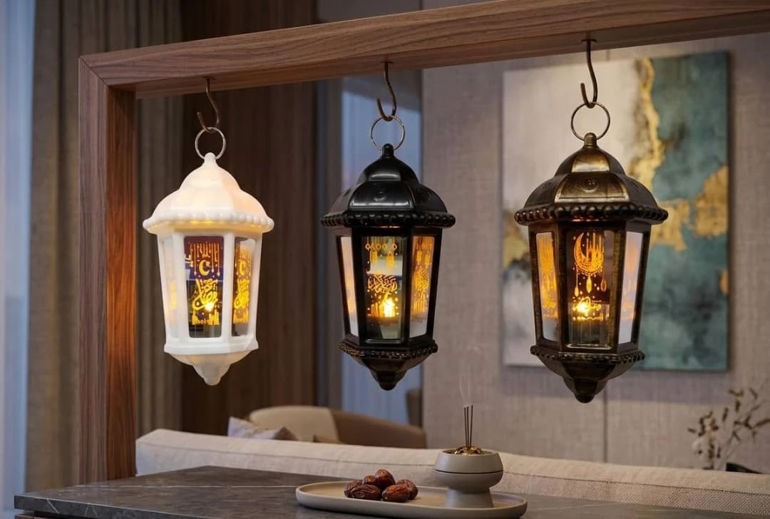 فانوس رمضاني أنيق مصنوع من خامات عالية الجودة، يتميز بتصميم كلاسيكي مستوحى من الطراز العربي الإسلامي، مع نقوش وزخارف جميلة وآيات وعبارات رمضانية مضيئة من الداخل. يعمل بإضاءة LED دافئة تمنح أجواء روحانية واحتفالية في المنزل.
