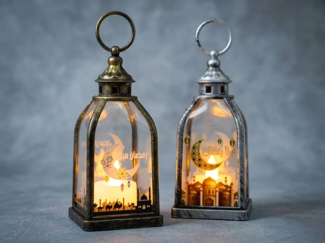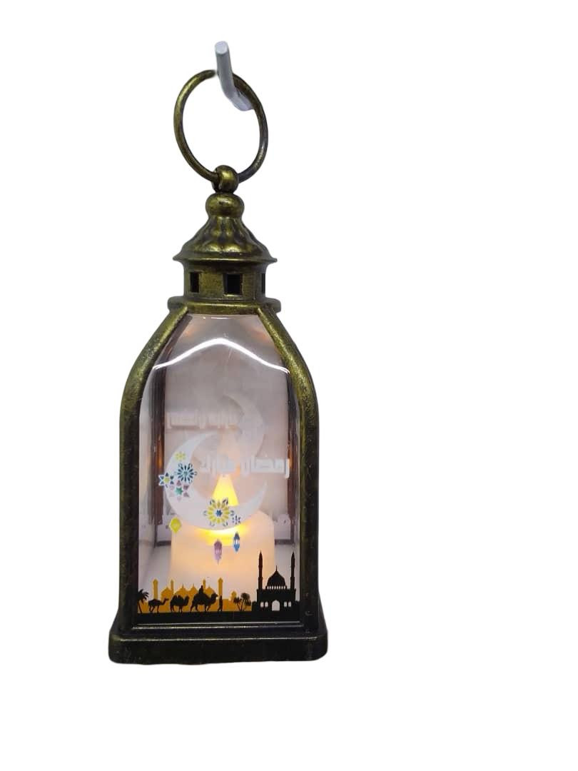 فانوس ديكوري بتصميم تراثي أنيق، مصنوع من إطار معدني متين مع ألواح شفافة مزخرفة برسومات الهلال والمساجد وعبارة “رمضان كريم”. يحتوي على إضاءة LED داخلية بلون دافئ تمنح أجواء روحانية مميزة. مزود بحلقة علوية للتعليق أو الحمل، مناسب لتزيين المنازل والمجالس والطاولات خلال شهر رمضان والمناسبات الإسلامية.