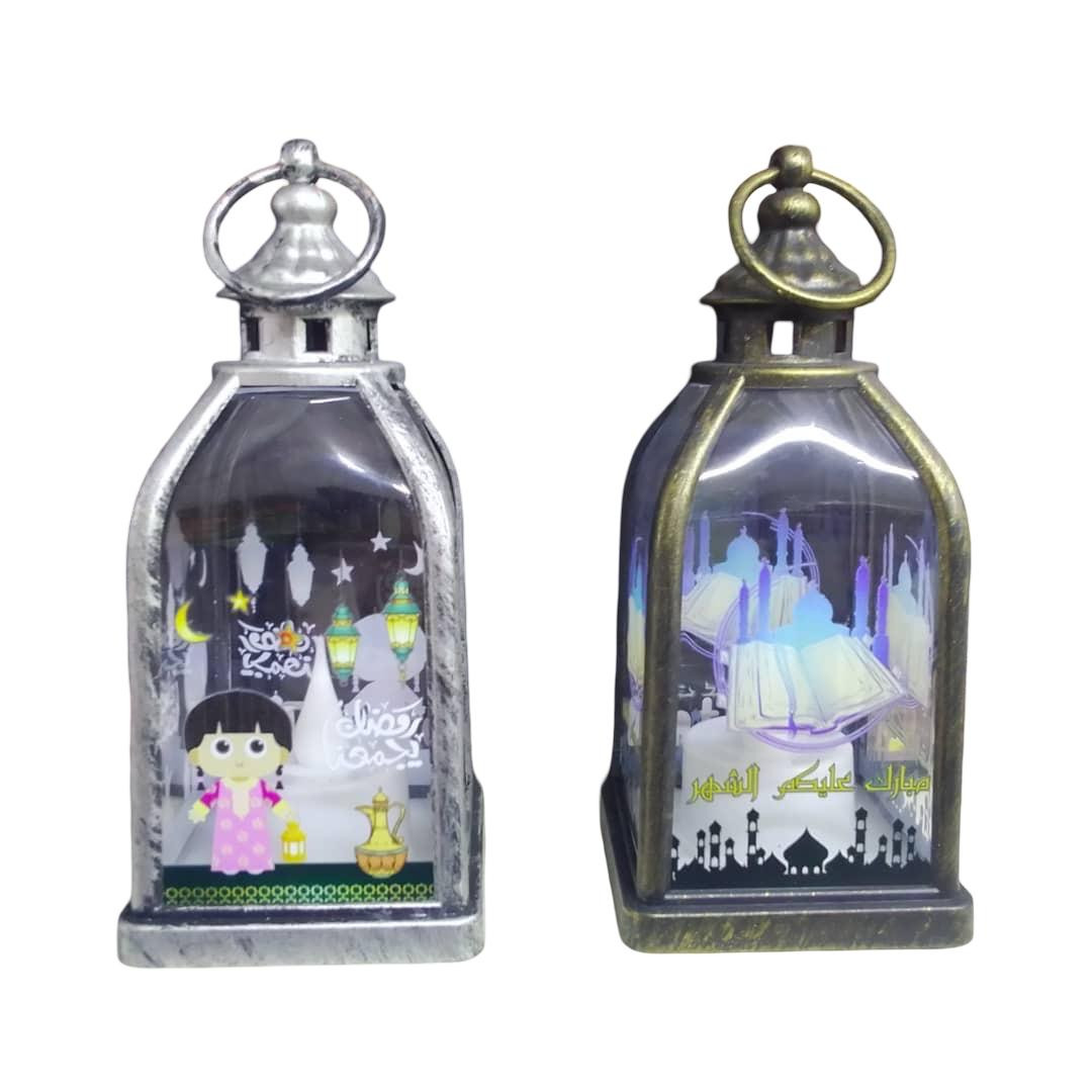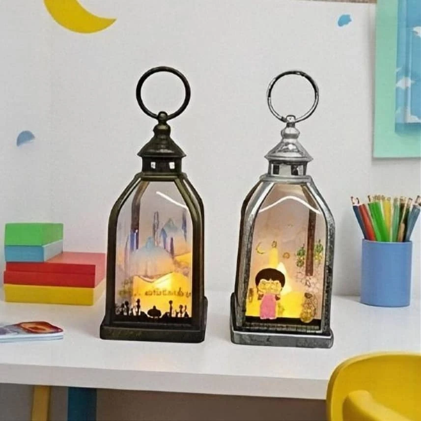 فوانيس مزخرفة للإضاءة، تحتوي على تصاميم تمثل أجواء رمضان مثل المساجد والنجوم والهلال، مما يضفي طابعاً روحانياً ومميزاً على المكان. الفوانيس مصممة بشكل تقليدي وتتميز بجوها المضيء والمريح. يمكن استخدامها كزينة رمضانية في المنازل أو الأماكن العامة، كما أنها تعتبر هدية جميلة لاحتفالات رمضان.