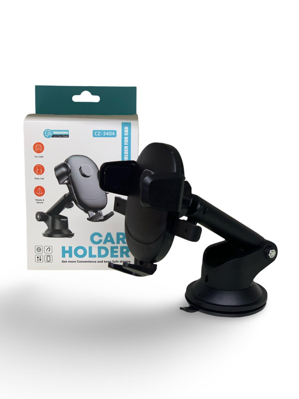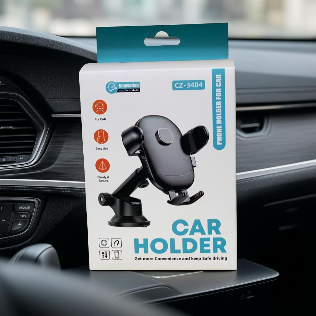 حامل هاتف عملي ومتين مصمم للاستخدام داخل السيارة، يثبت بسهولة على الزجاج الأمامي أو لوحة القيادة بفضل قاعدة الشفط القوية. يتميز بذراع قابل للتعديل لتوفير زاوية رؤية مثالية أثناء القيادة، مع مشبك جانبي يمسك الهاتف بإحكام ويمنع سقوطه.