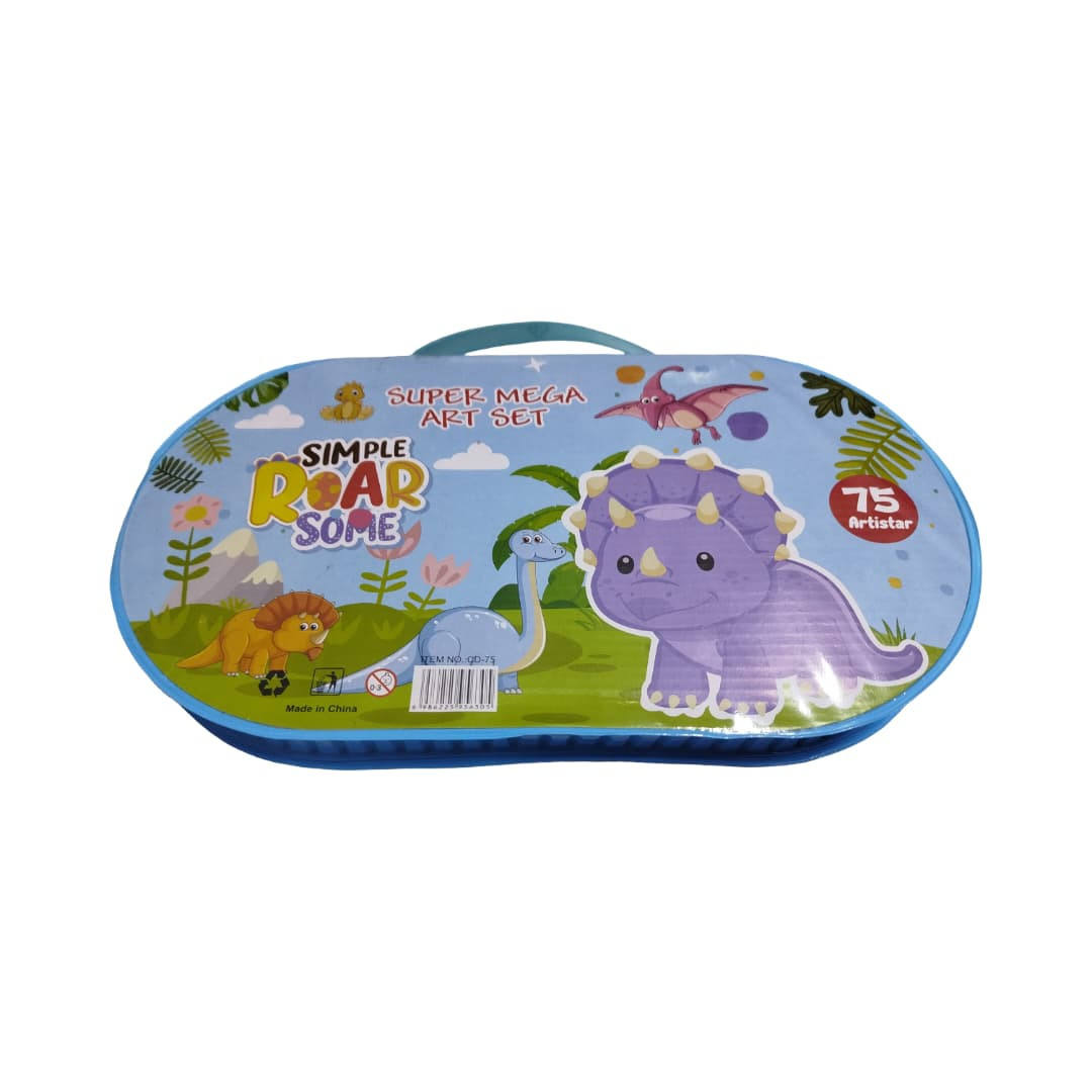 حقيبة فنية متكاملة بتصميم جذاب مستوحى من عالم الخيال والطبيعة، تحتوي على مجموعة متنوعة من أدوات الرسم والتلوين، مثل: الألوان الخشبية، الشمعية، المائية، أقلام التلوين، المقص، المسطرة، والمشابك. تأتي داخل حقيبة بلاستيكية متينة وسهلة الحمل، مرتبة بشكل منظم لسهولة الاستخدام.