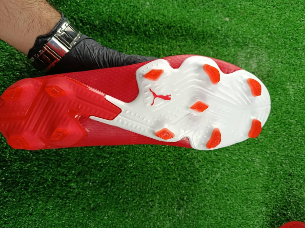 حذاء كرة قدم مصمم للعب على العشب الطبيعي والاصطناعي، يتميز بتصميمه المبتكر الذي يجمع بين الراحة والأداء. يوفر الحذاء ثباتًا ممتازًا على أرض الملعب بفضل النعل الخارجي المخصص، كما أن الجزء العلوي مصنوع من مواد خفيفة الوزن لتوفير شعور طبيعي بالكرة. يأتي الحذاء باللون الأحمر الناري مع تفاصيل باللون الوردي والأبيض، مما يمنحه مظهرًا جذابًا ومميزًا.
