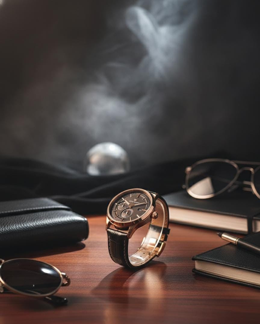 للرجل الذي يتحدث بأناقته قبل كلامه، ساعة تجمع بين الدفء الذهبي الوردي وعمق الأسود في تناغم لا يُقاوم.