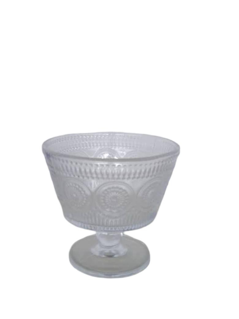 كاسات أنيقة مصنوعة من الزجاج الشفاف بتصميم محفور ولمسة كلاسيكية، مزودة بقاعدة ثابتة لسهولة التقديم. مناسبة لتقديم الآيس كريم، الحلويات، الفواكه، المهلبية، والتشيزكيك. تضيف مظهرًا راقيًا لطاولة التقديم، وتناسب الاستخدام المنزلي والمناسبات الخاصة.