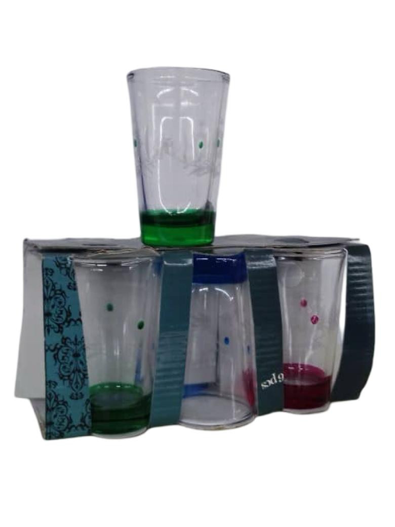 أضف لمسة من الأناقة لمائدتك مع هذا الطقم الرائع من الكاسات الزجاجية الطويلة. مصممة لتقديم المشروبات بأسلوب عصري، تتميز هذه الكاسات بقاعدة ملونة تضفي طابعًا مميزًا على كل مشروب. الحامل العملي يحافظ على ترتيب الكاسات، مما يجعله خيارًا مثاليًا للمناسبات أو الاستخدام اليومي.