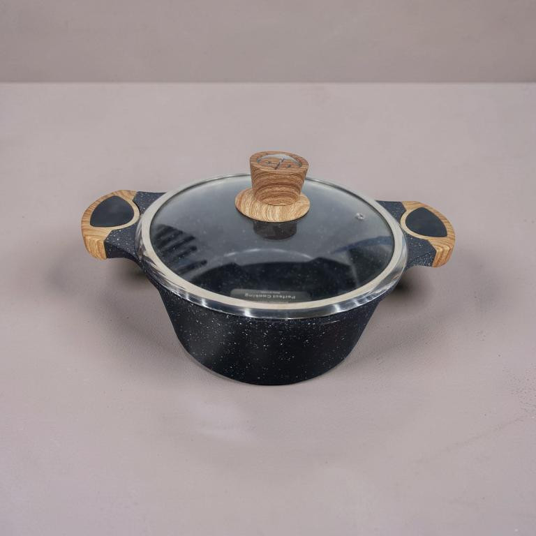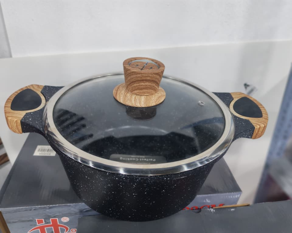 قدر عالي الجودة مصنوع من الجرانيت المقاوم للخدش والالتصاق، مزوّد بغطاء زجاجي شفاف لمراقبة الطعام أثناء الطهي. يتميز بمقابض ومقبض غطاء بتصميم خشبي أنيق لعزل الحرارة وتسهيل الاستخدام. مناسب لطهي الأرز، الشوربة، اليخنات والوجبات اليومية، ويوفر توزيعًا متساويًا للحرارة للحصول على نتائج مثالية. متوافق مع أغلب أنواع المواقد وسهل التنظيف.