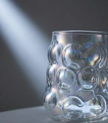 وهو كوب شفاف مزخرف بتصميم يشبه القنبلة اليدوية، مما يضيف لمسة فريدة ومميزة إلى تجربة الشرب. يتم تقديمه مع عبوة كرتونية، وهو مصنوع من الزجاج مما يجعله متينًا ويعطيه مظهرًا عصريًا.