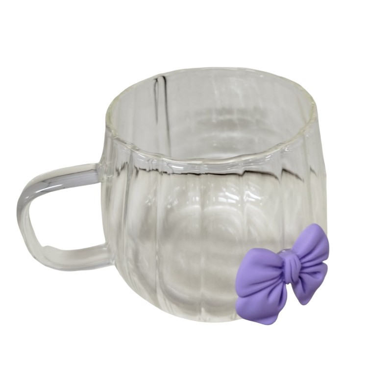 كوب أنيق مصنوع من زجاج شفاف عالي الجودة بتصميم مخطط عصري، مزين بفيونكة وردية جذابة تضيف لمسة أنثوية راقية. يتميز بمقبض مريح لسهولة الاستخدام، ومناسب لتقديم القهوة، الشاي، العصائر، أو المشروبات الساخنة والباردة. مثالي للاستخدام اليومي أو كهدية مميزة لمحبي التصاميم الناعمة والأنيقة