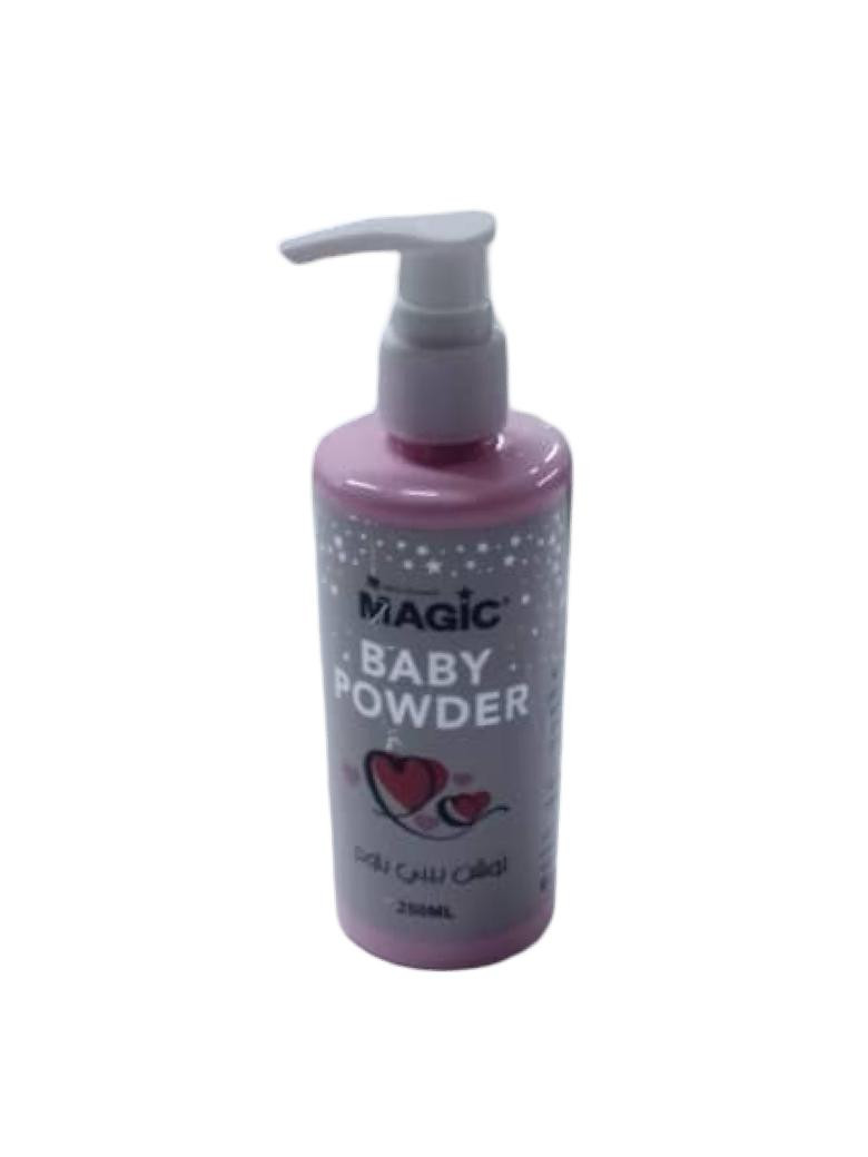 ماجيك لوشن للجسم: نوع: لوشن للجسم الحجم: 250 مل الوصف: لوشن معطر للجسم برائحة المسك، يعزز ترطيب البشرة ويجعلها ناعمة. ماجيك لوشن: نوع: لوشن للجسم الحجم: 250 مل الوصف: لوشن معطر برائحة "الرياح الملكية"، يمنح البشرة نعومة وترطيبًا عميقًا. ماجيك بودرة الأطفال: نوع: بودرة للأطفال الحجم: 250 مل الوصف: بودرة للأطفال ذات رائحة لطيفة تساعد في امتصاص الرطوبة وتمنح بشرة الطفل نعومة وحماي