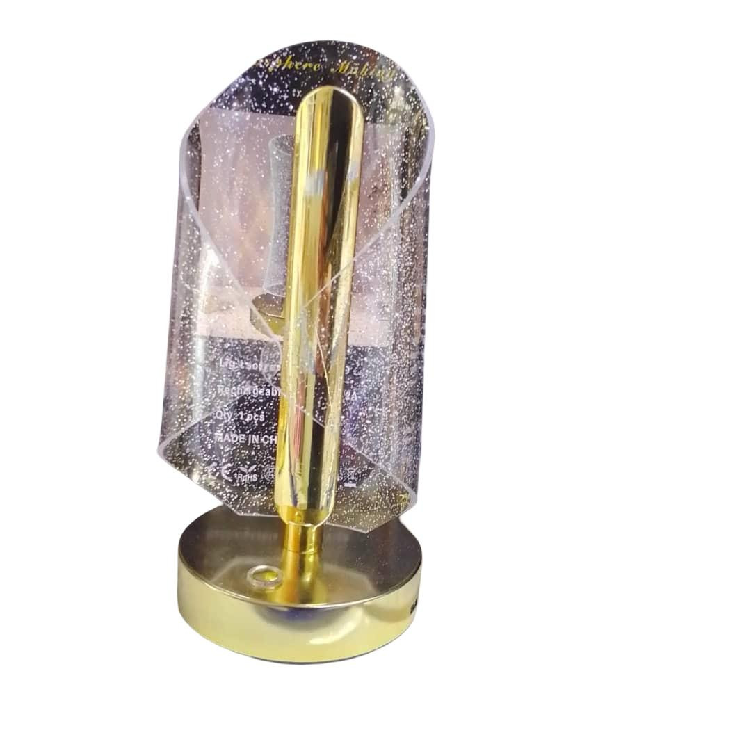 مصباح طاولة عصري بتصميم أنيق يجمع بين الزجاج الشفاف المزخرف والقاعدة المعدنية الذهبية، ليمنح المكان لمسة فاخرة وإضاءة دافئة ومريحة للعين. يتميز بتأثير ضوئي ثلاثي الأبعاد يخلق أنماطًا جذابة على الجدران والطاولة، مما يجعله مثاليًا لغرف النوم، المكاتب، وغرف المعيشة. يعمل بتقنية LED الموفرة للطاقة، مع تحكم سهل عبر زر لمس، ويتيح تغيير أوضاع الإضاءة حسب الرغبة. مناسب للاستخدام اليومي أو كهدية مميزة لعشاق الديكور العصري.