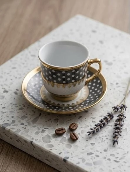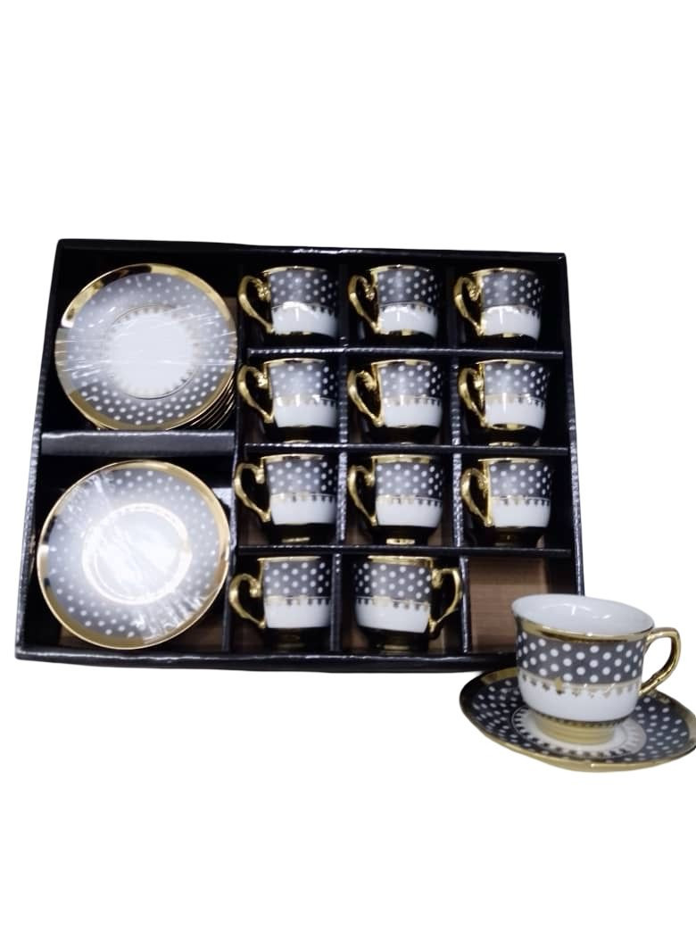 أضف لمسة من الفخامة إلى لحظات قهوتك مع هذه المجموعة الرائعة من فناجين القهوة المصممة بدقة. تتضمن المجموعة 6 فناجين قهوة مع 6 صحون، مصنوعة من الخزف الفاخر المزخرف بتصميم عصري باللونين الأبيض والأسود مع لمسات ذهبية تضفي لمسة من الأناقة. مثالية للاستمتاع بالقهوة الصباحية أو في جلسات الشاي مع الأصدقاء والعائلة، حيث تجمع بين الجمال والعملية لتمنحك تجربة قهوة لا مثيل لها.