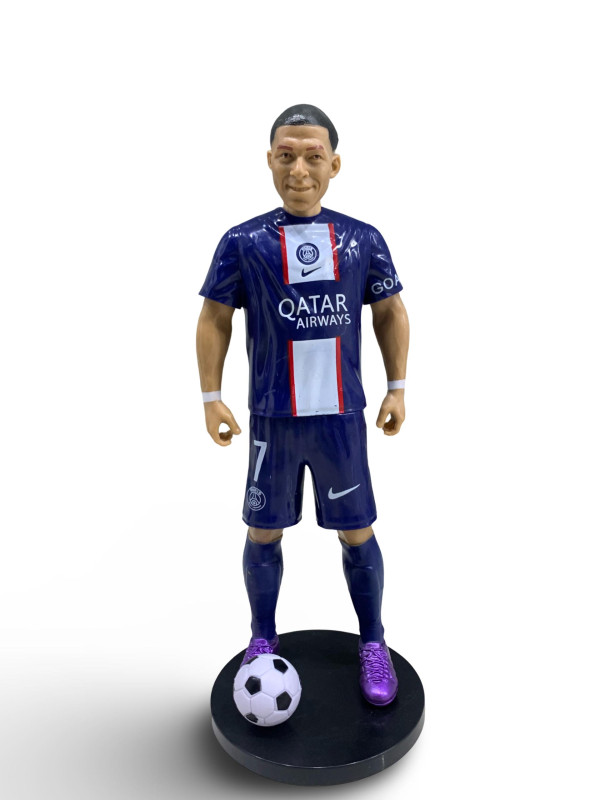 مجسم عالي الجودة للاعب كرة القدم العالمي كيليان مبابي، يرتدي قميص نادي باريس سان جيرمان باللون الأزرق مع شعار “Qatar Airways” ورقم 7. يتميز بتفاصيل دقيقة في الوجه والزي الرياضي، مع قاعدة ثابتة وكرة قدم لزيادة الواقعية. مناسب لهواة جمع المجسمات ومحبي كرة القدم، كما يعد قطعة ديكور رائعة لغرفة النوم أو المكتب أو متجر الهدايا.