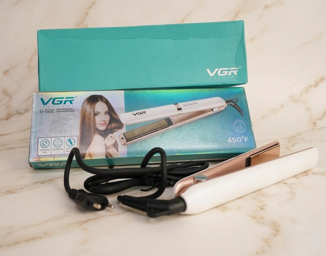 مكواة شعر احترافية من علامة VGR مصممة لفرد الشعر وتنعيمه بسرعة وكفاءة. تأتي بألواح تسخين عريضة (حوالي 23 مم) لتوزيع متساوٍ للحرارة، وتصل درجة حرارتها حتى 450°F (حوالي 230°C) لتناسب مختلف أنواع الشعر، خاصة الشعر الكثيف والمجعد.