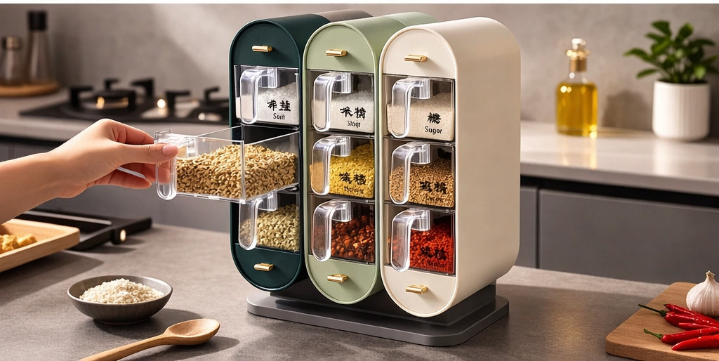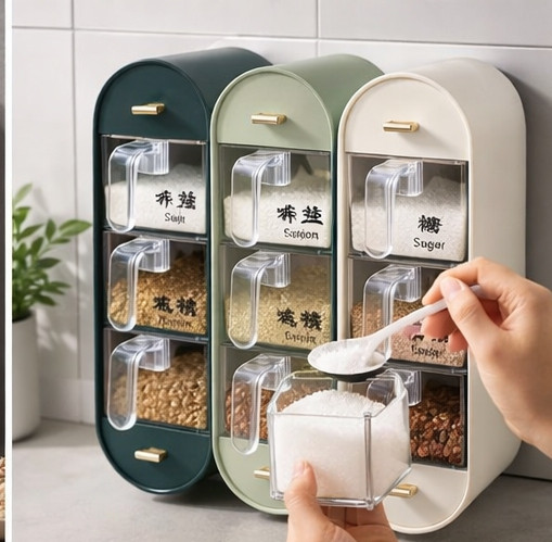 منظم عملي وعصري لتخزين البهارات، الحبوب، والبقوليات، مزود بعدة أدراج شفافة تسهّل رؤية المحتوى والتحكم في الكمية عند الاستخدام. يتميز بتصميم عمودي موفّر للمساحة يناسب المطابخ الحديثة، مع ألوان أنيقة تضيف لمسة جمالية للمكان. الأدراج محكمة الإغلاق للحفاظ على نضارة المحتويات وحمايتها من الرطوبة والغبار، كما أنها سهلة السحب والتنظيف. مثالي لتنظيم المطبخ وجعل الطهي أكثر سرعة وراحة.