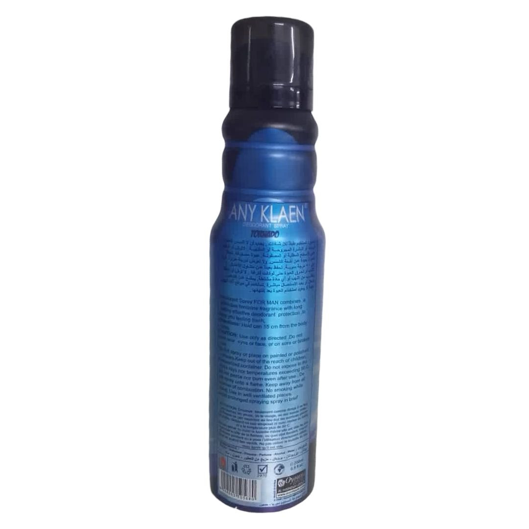 TORNADO: يأتي برائحة منعشة وقوية، مع تصميم عبوة تمثل القوة والعاصفة باستخدام اللون الأزرق.