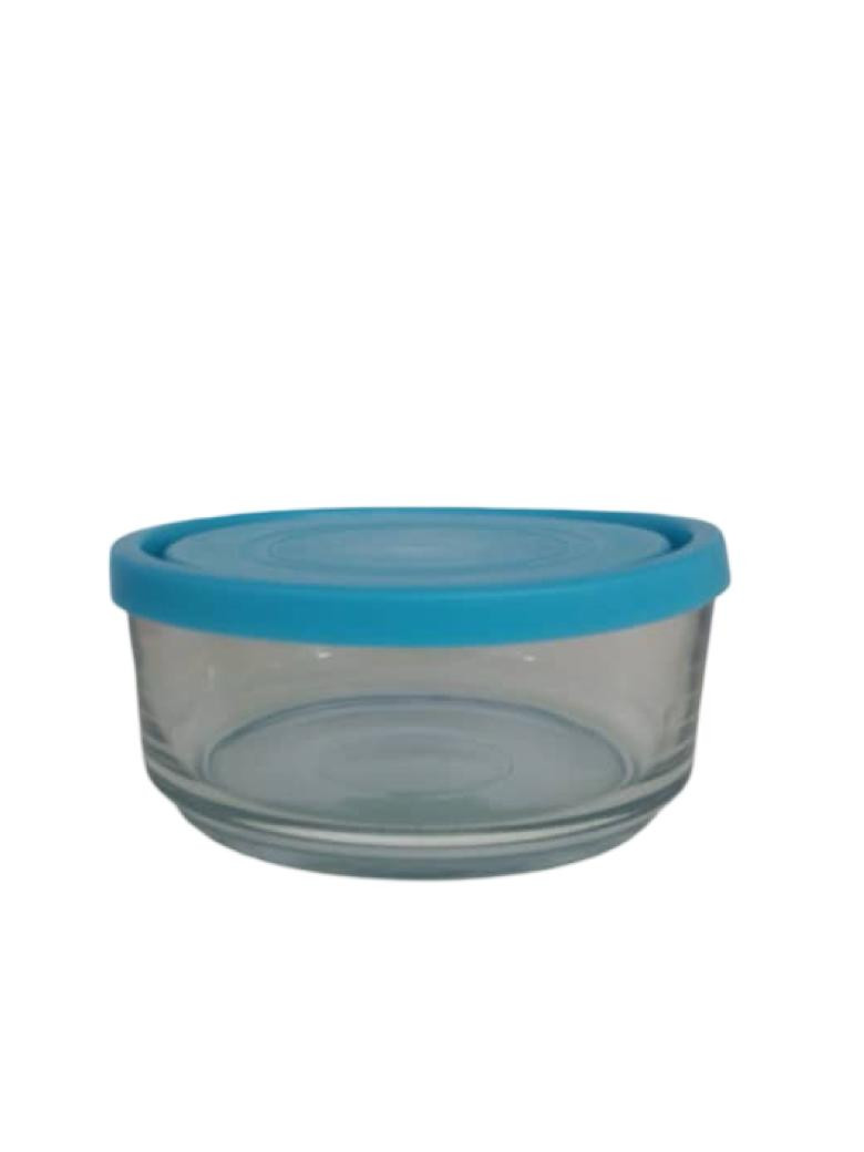 وعاء عملي مصنوع من زجاج شفاف عالي الجودة مع غطاء سيليكون مرن باللون الأزرق، يوفر إغلاقًا محكمًا للحفاظ على نضارة الطعام ومنع التسرب. مناسب لتخزين بقايا الطعام، الفواكه، والوجبات الجاهزة في الثلاجة أو أثناء التنقل. سهل التنظيف، آمن للاستخدام اليومي، ويتميز بتصميم أنيق ومتين