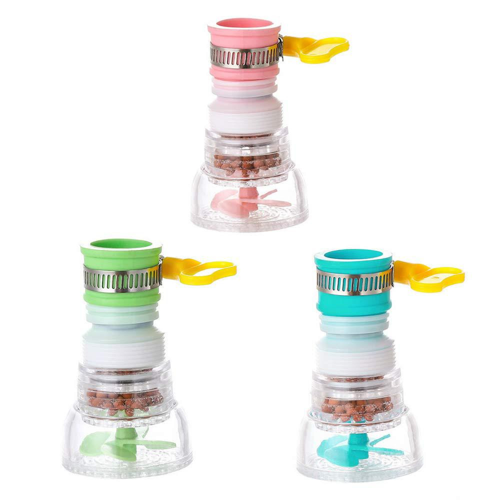يأتي بتصميم شفاف يسمح برؤية حبيبات الفلترة ومروحة التوزيع، مع حلقات تثبيت ملونة بالأخضر والوردي والأزرق. مصنوع من مواد مقاومة للصدأ وسهل التركيب على مختلف أنواع الحنفيات بفضل القفل المحكم القابل للتعديل.