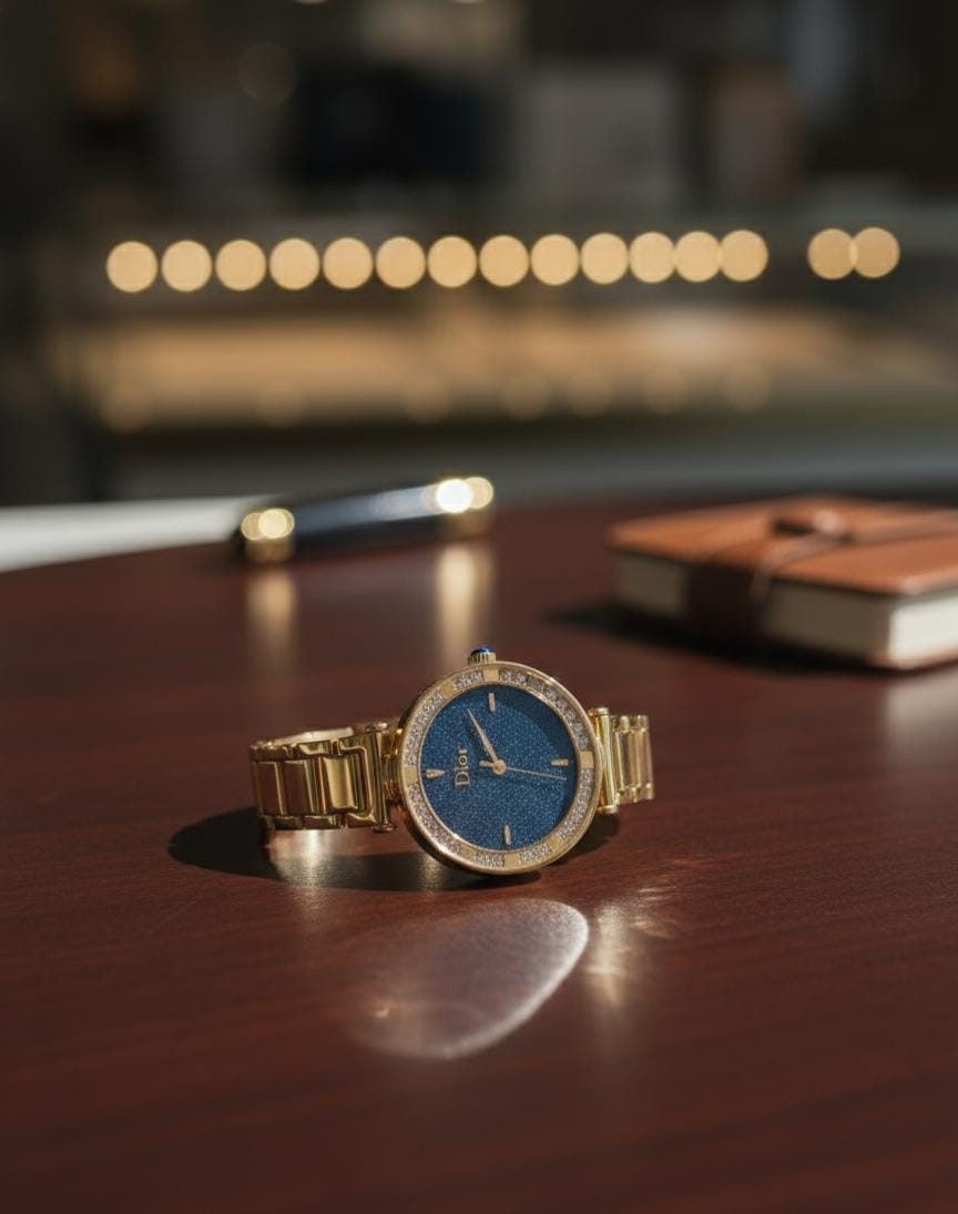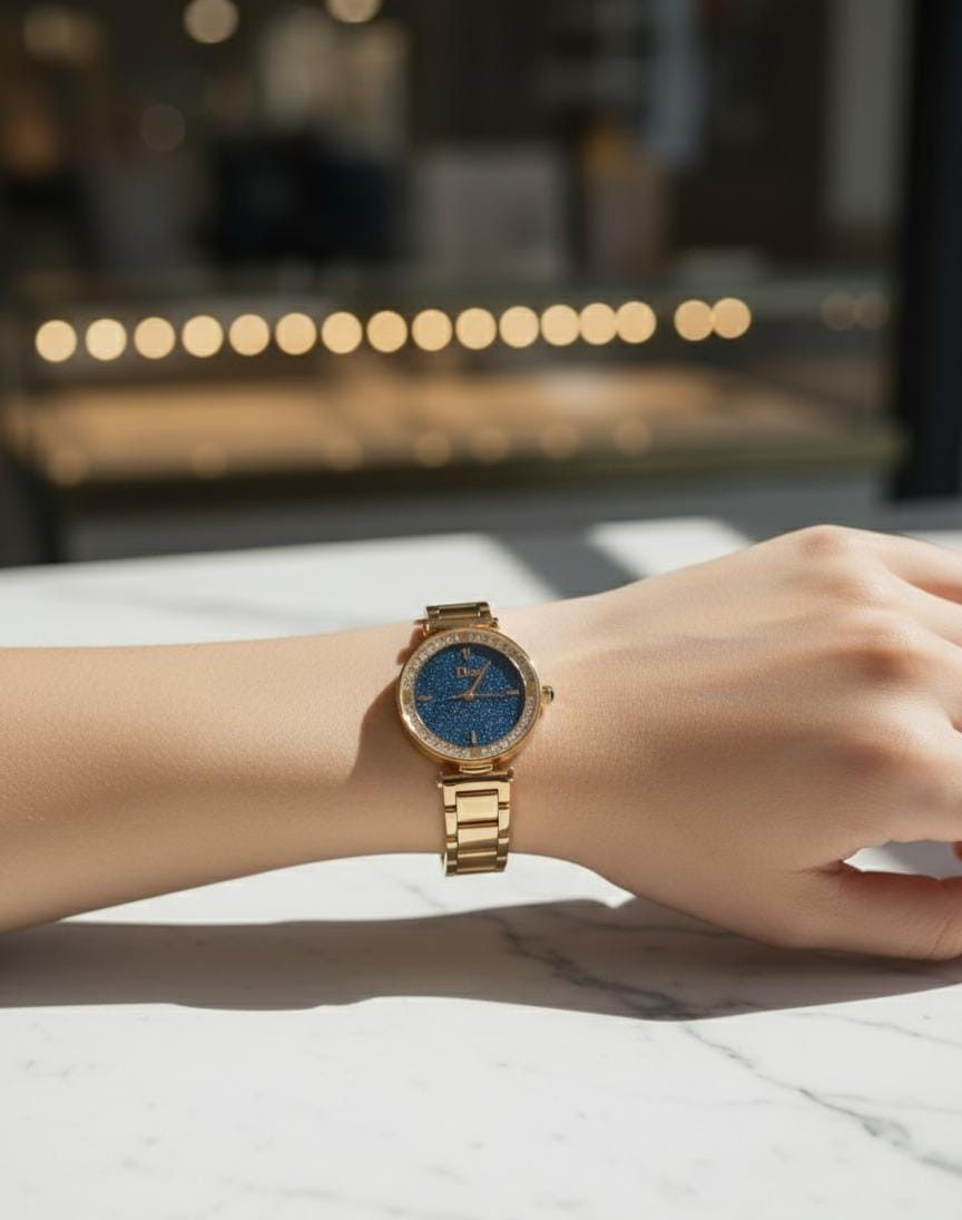 ساعة Dior – بريق الذهب الوردي وسماء النجوم ⌚✨
