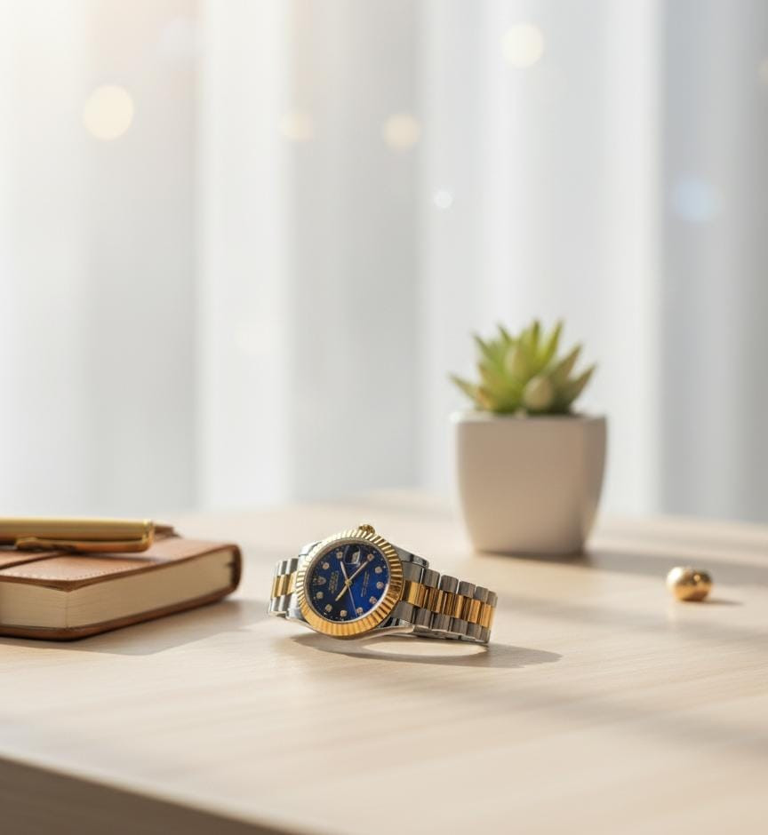 ساعة Rolex Datejust – جرأة الأزرق بلمسة ذهبية ⌚✨