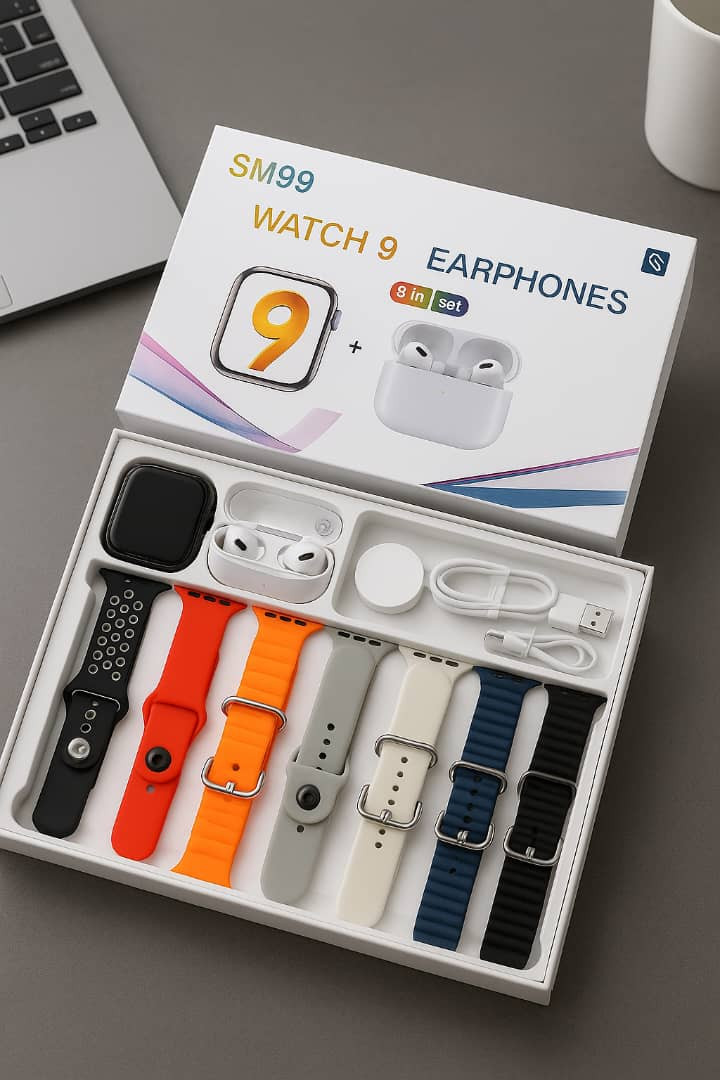 ? سـاعـة ذكـيـة SM99 Watch 9 مـع سـمـاعـات أذن لاسـلـكـيـة – مـجـمـوعـة 9 فـي 1