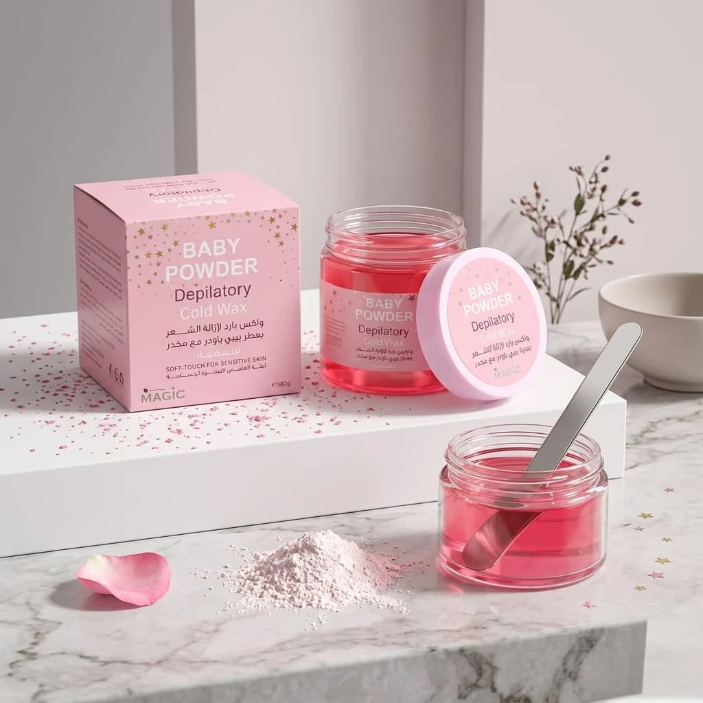 شمع لإزالة الشعر بدون تسخين، يتميز برائحة بودرة الأطفال اللطيفة، ومناسب للبشرة الحساسة. يساعد على إزالة الشعر من الجذور بسهولة وفعالية، ويترك البشرة ناعمة وناعمة الملمس لفترة أطول. يتمتع بتركيبة لطيفة تقلل من التهيج والاحمرار، كما يمنح إحساسًا بالانتعاش بعد الاستخدام.