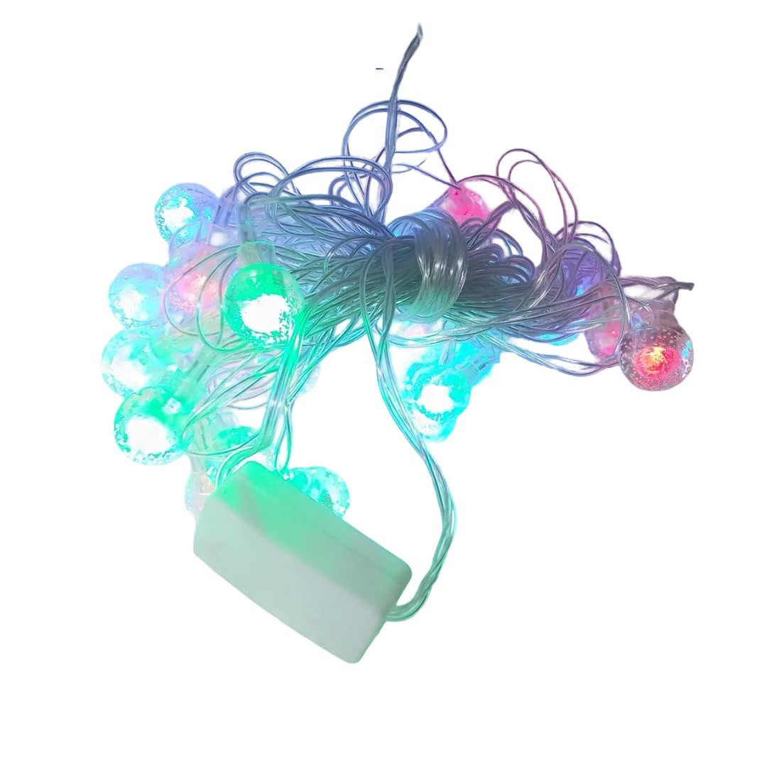 سلسلة إضاءة ديكورية أنيقة مزودة بكرات شفافة مضيئة بألوان متعددة مثل الأخضر والأزرق والوردي، تمنح المكان مظهرًا جذابًا ودافئًا. تعمل ببطارية داخل علبة تحكم صغيرة، مما يجعلها سهلة الاستخدام دون الحاجة إلى مصدر كهرباء. مناسبة لتزيين غرف النوم، الحفلات، المناسبات، الشرفات، أو ديكور الأعياد.