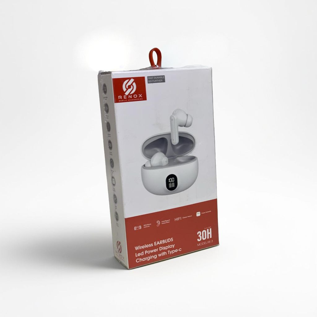 سماعات أذن لاسلكية عالية الجودة من شركة رينوكس، تأتي مع علبة شحن ذكية مزودة بشاشة LED لعرض مستوى البطارية. تدعم تقنية الصوت عالي الدقة (HiFi) لتجربة استماع واضحة ونقية، وتوفر وقت تشغيل يصل إلى 30 ساعة مع علبة الشحن. تعمل بمنفذ شحن Type-C لسرعة الشحن وسهولته، وتتميز بتصميم أنيق ومريح للاستخدام اليومي والمكالمات وممارسة الرياضة.
