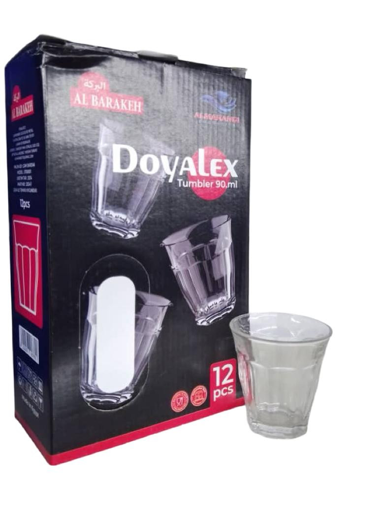 طقم أكواب زجاجية صغيرة من ماركة البركة (Al Barakeh) موديل Doyalex، بسعة 90 مل للكوب الواحد. يتميز بتصميم أنيق ومتين، مناسب لتقديم الشاي، القهوة العربية، الإسبريسو، والمشروبات الساخنة والباردة. مصنوع من زجاج عالي الجودة، مقاوم للاستخدام اليومي وسهل التنظيف. يأتي في علبة تحتوي على 12 كوب، مناسب للاستخدام المنزلي والضيافة.