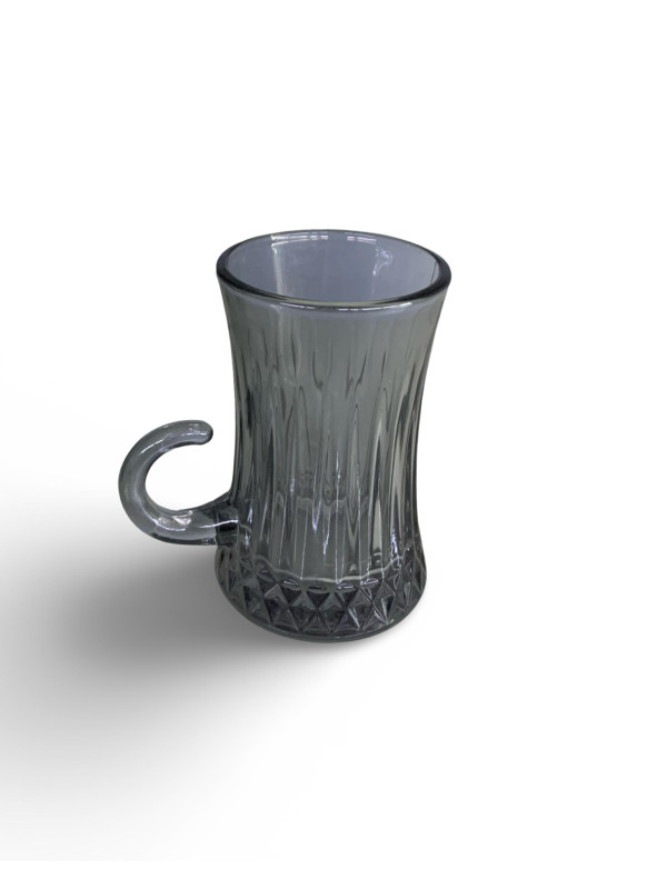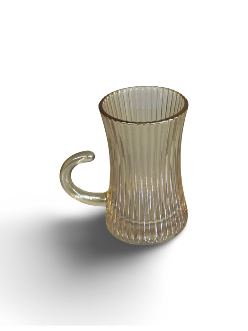 طقم فناجين شاي زجاجية مضلعة مع مقبض