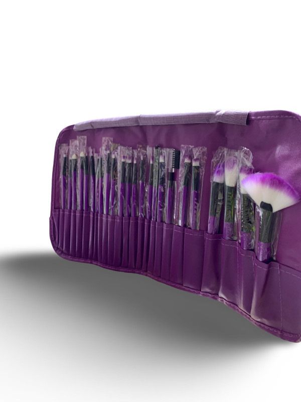 طقم فرش مكياج متكامل وعالي الجودة، يضم 20 فرشاة متنوعة لتطبيق المكياج بدقة واحترافية. يأتي مع حقيبة أنيقة قابلة للطي باللون البنفسجي، لتسهيل التخزين والحمل أثناء السفر أو الاستخدام اليومي.