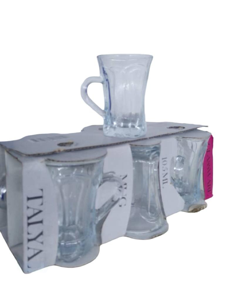 طقم أنيق من كاسات الشاي المصنوعة من زجاج شفاف عالي الجودة، بتصميم كلاسيكي ومقبض مريح لسهولة الاستخدام. مناسب لتقديم الشاي، القهوة العربية، والمشروبات الساخنة والباردة. يتميز بالمتانة وسهولة التنظيف، ويأتي داخل علبة كرتونية للحفظ والنقل الآمن. مثالي للاستخدام اليومي أو للضيافة.