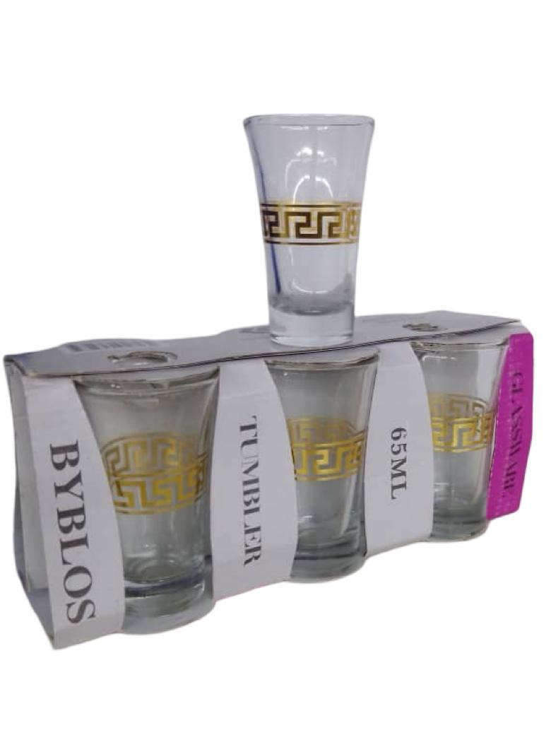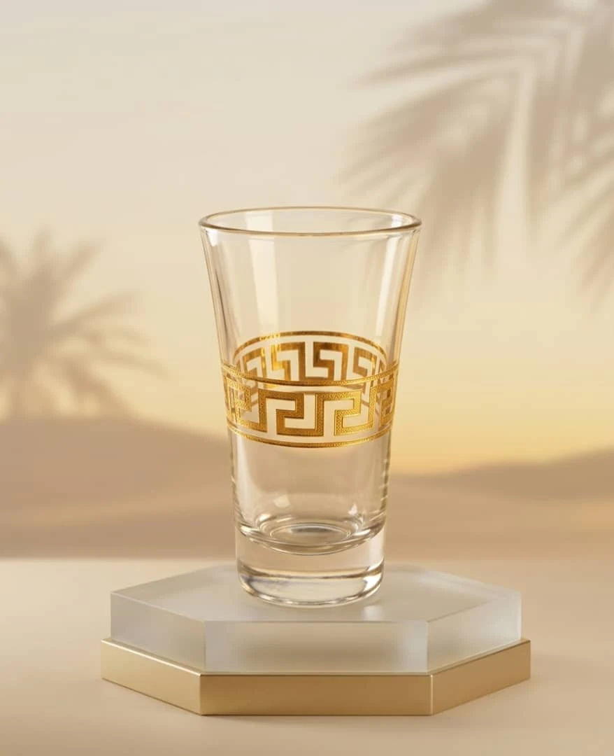 طقم أنيق من كؤوس الشوت مصنوع من الزجاج الشفاف عالي الجودة، مزين بنقشة ذهبية فاخرة على شكل زخرفة هندسية. يتميز بسعة 65 مل لكل كأس، مما يجعله مناسبًا لتقديم المشروبات الروحية والعصائر الصغيرة والضيافة في المناسبات. يأتي في عبوة عملية تضم 6 كؤوس، مثالي للاستخدام المنزلي أو كهدية.