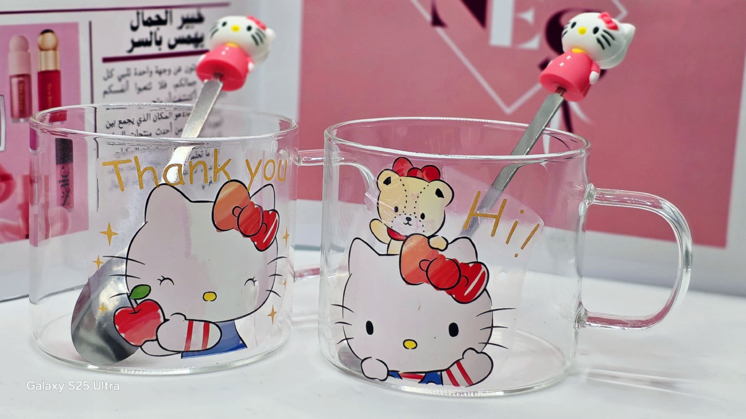 *لـعشاق Hello Kitty .. هـذا الـبوكس صُـمم لـكم ! ???* دلـلي نـفسك أو أهـدي مـن تـحبين بـطقم "هـلو كـيتي" الـوردي والأنـيق . طـقم مـتكامل يـأتي فـي بـوكس يحتوي عـلى كـوبين مـن الـزجاج الـفاخر مـع مـلاعق كـيتي الـلطيفة .