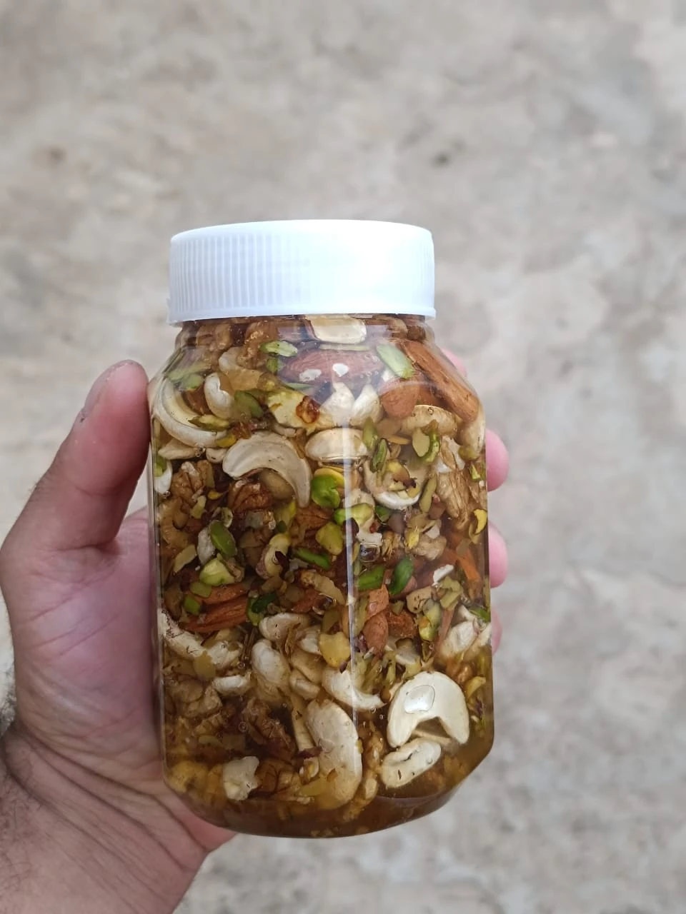 استمتع بمذاق فاخر يجمع بين التغذية والطاقة! هذه الخلطة المميزة تحتوي على مجموعة مختارة من المكسرات الكاملة عالية الجودة، تشمل الكاجو، اللوز، الفستق، والجوز، محفوظة بعناية داخل عسل طبيعي نقي يمنحها لمعانًا شهيًا ونكهة غنية.