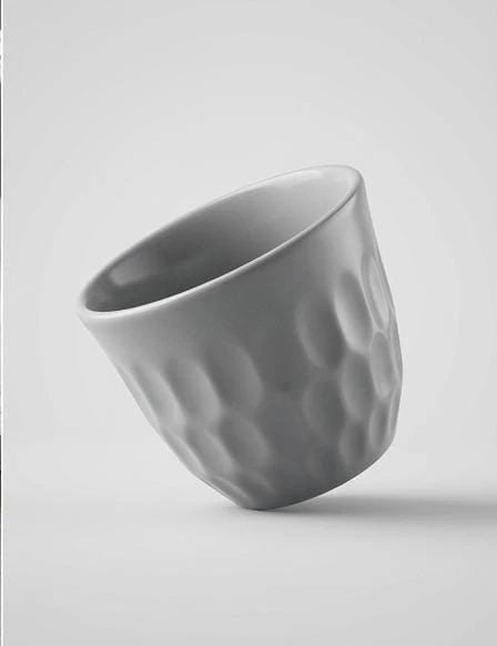 هذه صورة لمجموعة من الأكواب البيضاء الصغيرة. المجموعة تتضمن 6 أكواب داخل علبة أنيقة ذات لون ذهبي على الحواف. الأكواب مصممة بشكل هندسي مع تفاصيل محفورة على السطح الخارجي. هذه الأكواب تبدو مناسبة لتقديم الشاي أو القهوة، وتتميز بتصميم بسيط وأنيق يناسب مختلف الأذواق