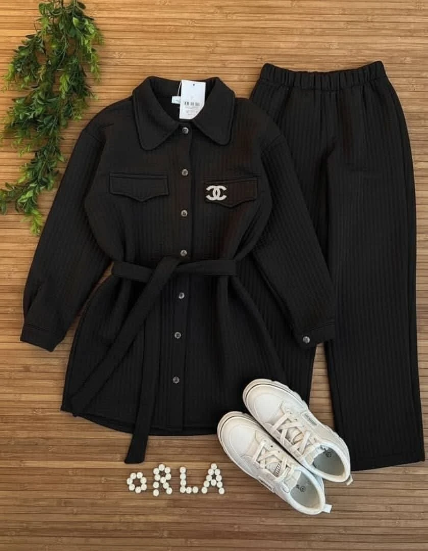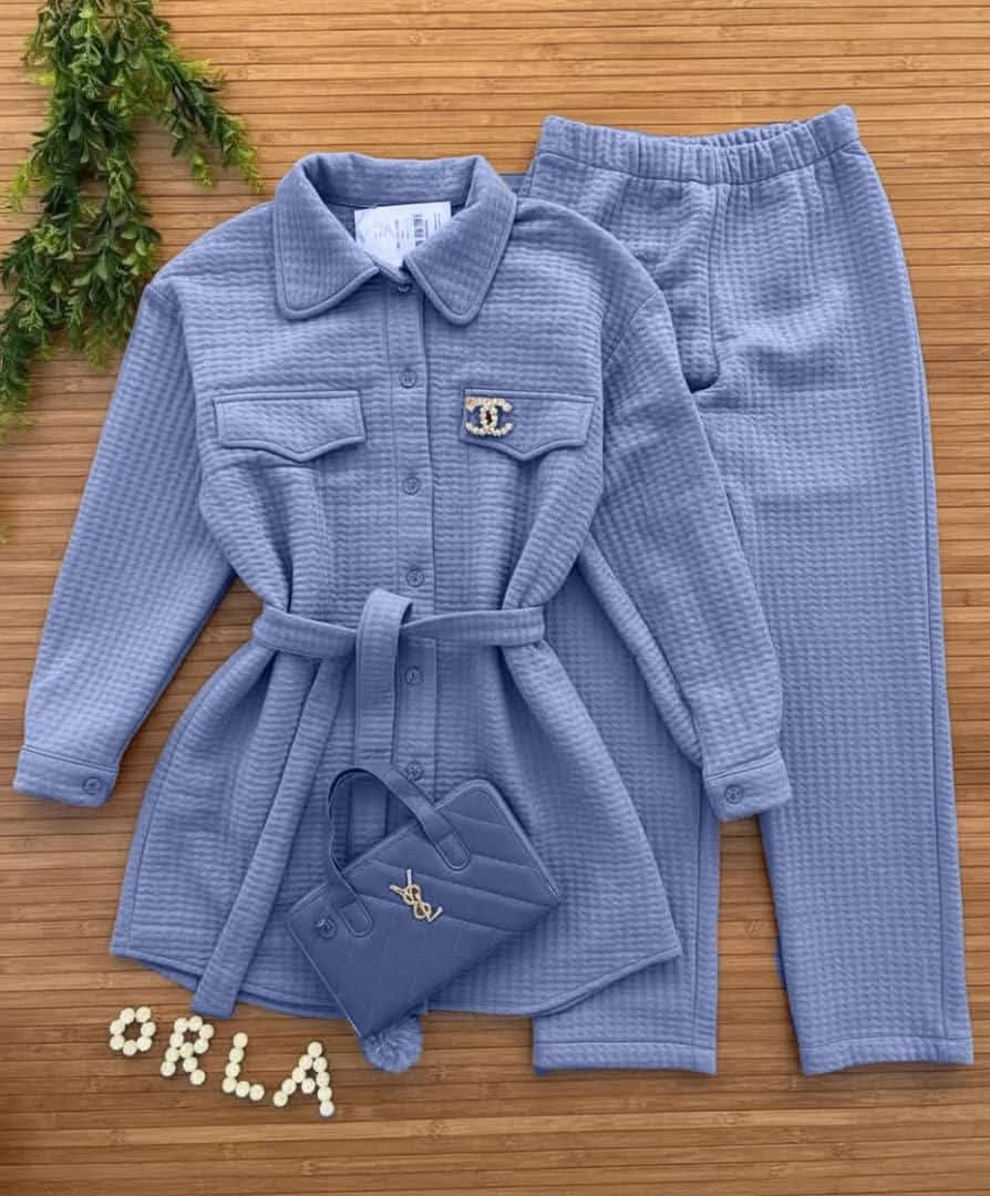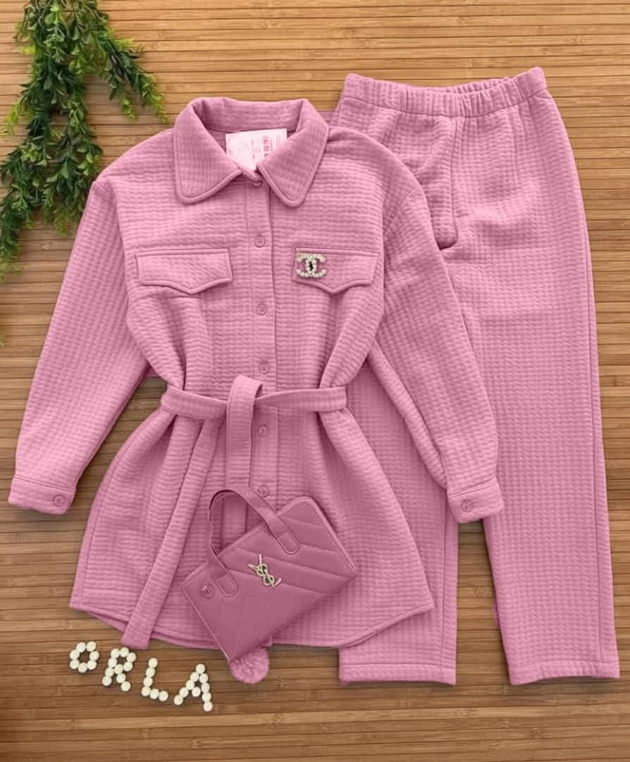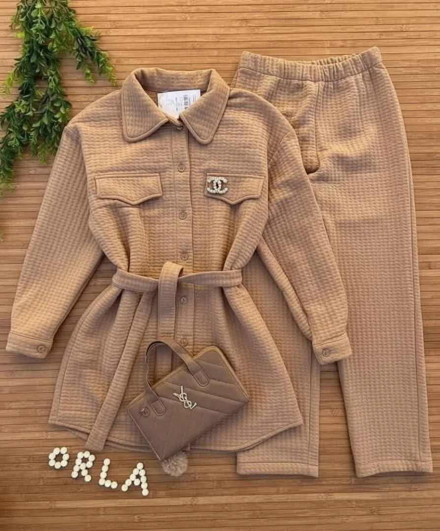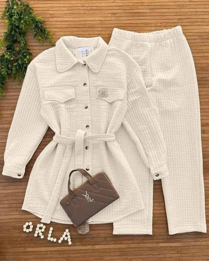 ✨ أناقة لا تُضاهى ودفء مثالي! ✨ ​هل تبحثين عن إطلالة متكاملة تجمع بين الرقي والراحة؟ ​نقدم لكِ هذه المجموعة المميزة المكونة من قطعتين، مصممة بخامة منقوشة وناعمة الملمس توفر لكِ الدفء المثالي دون التضحية بالأناقة. ​ما يميز هذه المجموعة؟ ​الجاكيت الطويل: ​تصميم عصري بياقة قميص وأزرار أمامية. ​مُزين بجيبين على الصدر يضيفان لمسة عملية. ​حزام خصر قابل للتعديل لتحديد القوام وإضفاء لمسة أنثوية ساحرة. ​البنطال: ​تصميم مريح بقصة مستقيمة. ​خامة مرنة تضمن حرية الحركة طوال اليوم. ​الخامة: نسيج مبطن يمنحكِ شعورًا بالاحتضان والدفء. ​اجعليها خيارك الأول للمناسبات الكاجوال الأنيقة أو لإطلالة يومية مريحة وراقية. ​اطلبيها الآن واستمتعي بمزيج من الراحة والجمال