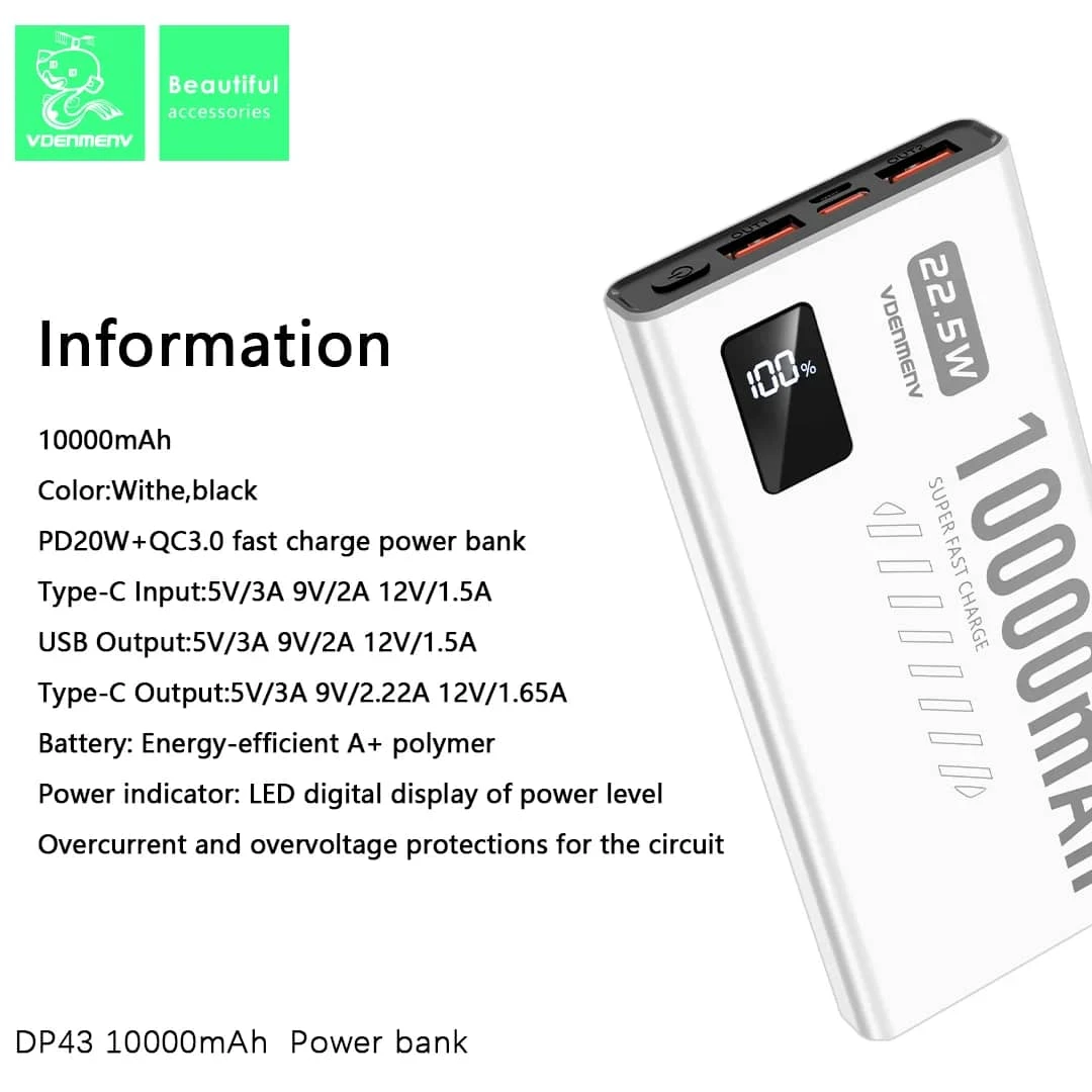سعة البطارية: 10000mAh – شحن كامل لهاتفك أكثر من مرة.