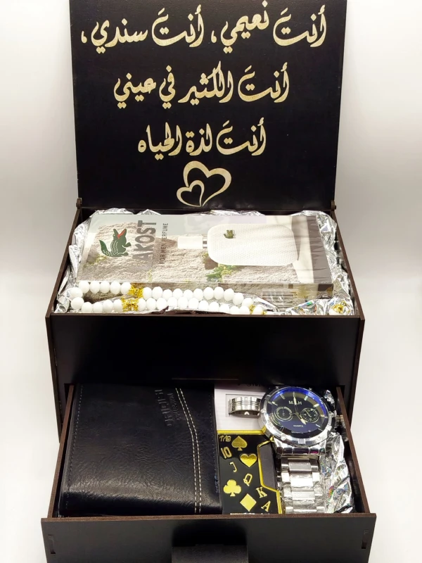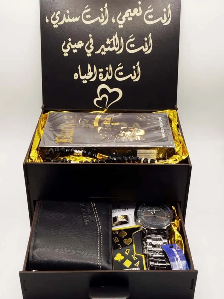 بـارفـان , مـسـبـحـة كـريـسـتـال , سـاعـة مـعـدن , خـاتـم سـتـانـلـيس , جـزدان جـلـد , قـداحـة مـعـدن شـيـنـمـوه