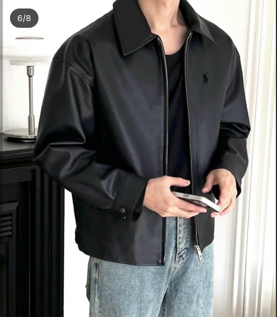 جاكيت قماش جلد طبيعي تركي نوع أول مكفول #POLO مع شعار طباعه ديجيتال تقيل مبطن فرو لون اسود من جوا قطعة وكالات مقاسات M..L..XL..XXL