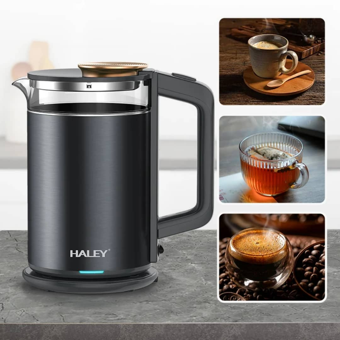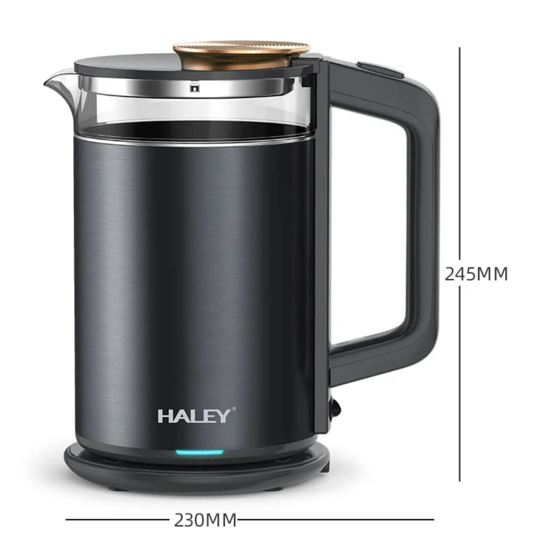 غلاية HALEY HY-8905 تجمع بين الأداء العالي والتصميم العملي. بسعة 2.0 لتر وقدرة 1800 واط، توفر غليان سريع وآمن للماء. مزودة بقاعدة طاقة دوارة بزاوية 360 درجة لسهولة الاستخدام من أي اتجاه، وزر تشغيل تلقائي بلمسة واحدة. تشمل وظيفة الحفاظ على الحرارة لتوفير الراحة أثناء الاستخدام اليومي. تعمل على تيار متردد 220–240 فولت، 50/60 هرتز، مما يجعلها مثالية للمنازل والمكاتب.