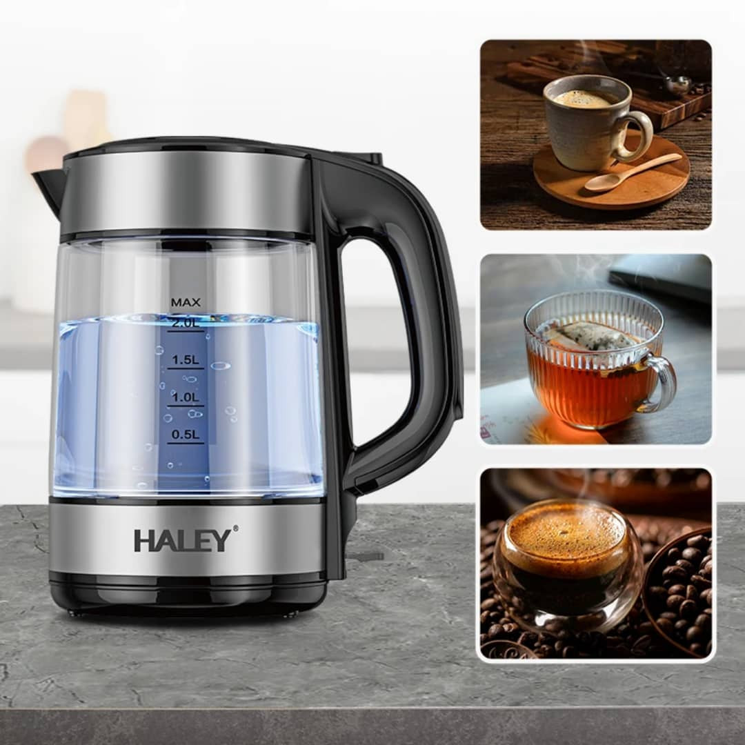 غلاية HALEY الكهربائية الزجاجية HY-8824 تجمع بين التصميم العصري والتقنية الذكية. بسعة 2.0 لتر وقدرة 2000 واط، توفر غليانًا سريعًا وآمنًا للماء. مزودة بشاشة عرض أنيقة وإضاءة LED زرقاء تضيف لمسة جمالية أثناء التشغيل. تعمل بزر تشغيل تلقائي بلمسة واحدة، وتحتوي على وحدة تحكم مقاومة للماء لضمان السلامة. قاعدة دوارة 360 درجة لسهولة الاستخدام من أي زاوية، وتيار كهربائي 220–240 فولت / 50–60 هرتز. مثالية لتحضير الشاي، القهوة، والمشروبات الساخنة بكل راحة وأناق