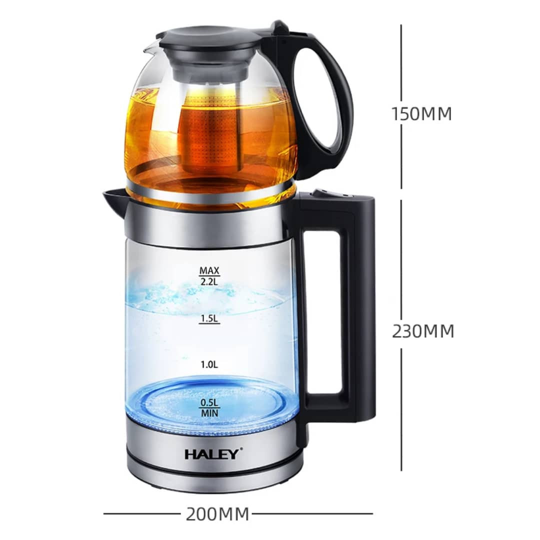غلاية HALEY HY-8924 تجمع بين الأناقة والتقنية في جهاز واحد لتحضير الماء والشاي. بسعة 2.2 لتر وقدرة تسخين عالية 2000 واط، توفر غليان سريع وفعال. مصنوعة من زجاج عالي الجودة من السيليكون والبورون المقاوم للحرارة، مع هيكل من الفولاذ المقاوم للصدأ الصالح للطعام. مزودة بقاعدة دوارة 360 درجة لسهولة الاستخدام، ونافذة شفافة لقياس مستوى الماء بدقة. تأتي بسلك طاقة بطول 0.75 متر ووزن خفيف 500 غرام، مما يجعلها مثالية للمطابخ العصرية ومحبي الشاي.