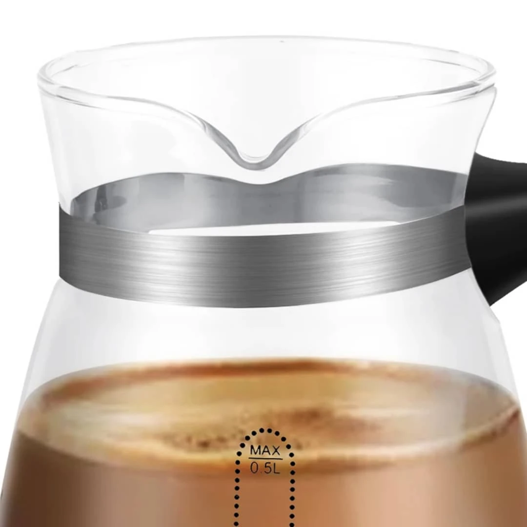 غلاية زجاج من الزجاج والفولاذ المقاوم للصدأ عالية الجودة بسعة 500 مل يتميز بتصميم محمول مع هيكل من الزجاج والفولاذ المقاوم للصدأ، مما يجعله متينا وأنيقا للاستخدام المنزلي بقوة 600 واط، يوفر تسخينا فعالاً وتحكما في درجة الحرارة مع كونه صديقًا للبيئة وسهل التنظيف. تضمن وظيفة الإطفاء التلقائي لامة أثناء الاستخدام، ويعزز التصميم خفيف الوزن قابلية النقل