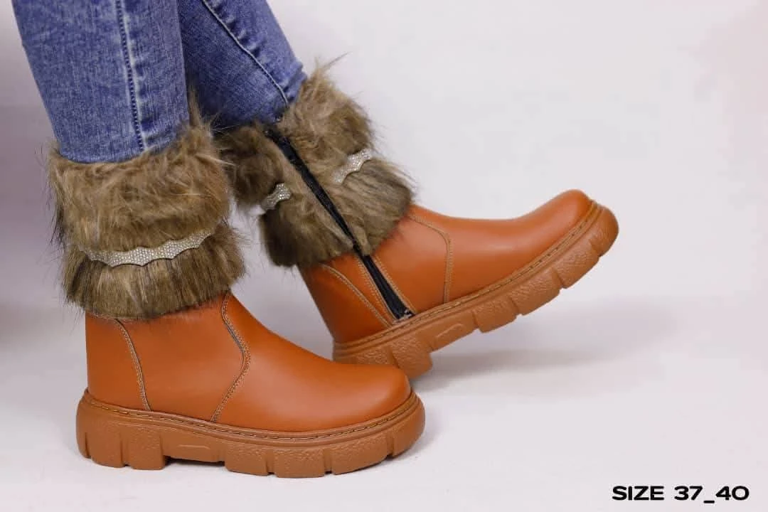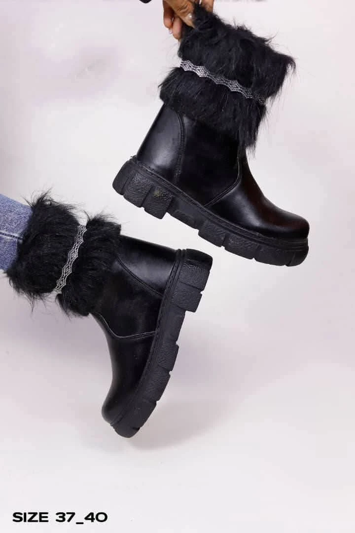 استمتعي بالدفء والأناقة خلال الشتاء مع هذا الحذاء العملي والمميز. يأتي بتصميم أنيق مع فرو صناعي ناعم وسحاب جانبي لسهولة الارتداء، ونعل سميك يمنحك ثباتًا وراحة طوال اليوم. ✅ فرو صناعي بزخرفة متعرجة ✅ سحاب جانبي عملي ✅ متوفر بمقاسات 37 إلى 40